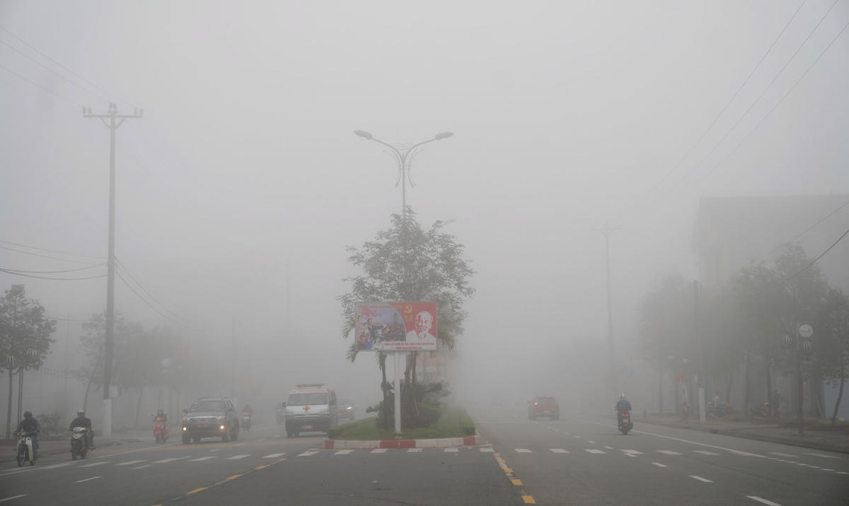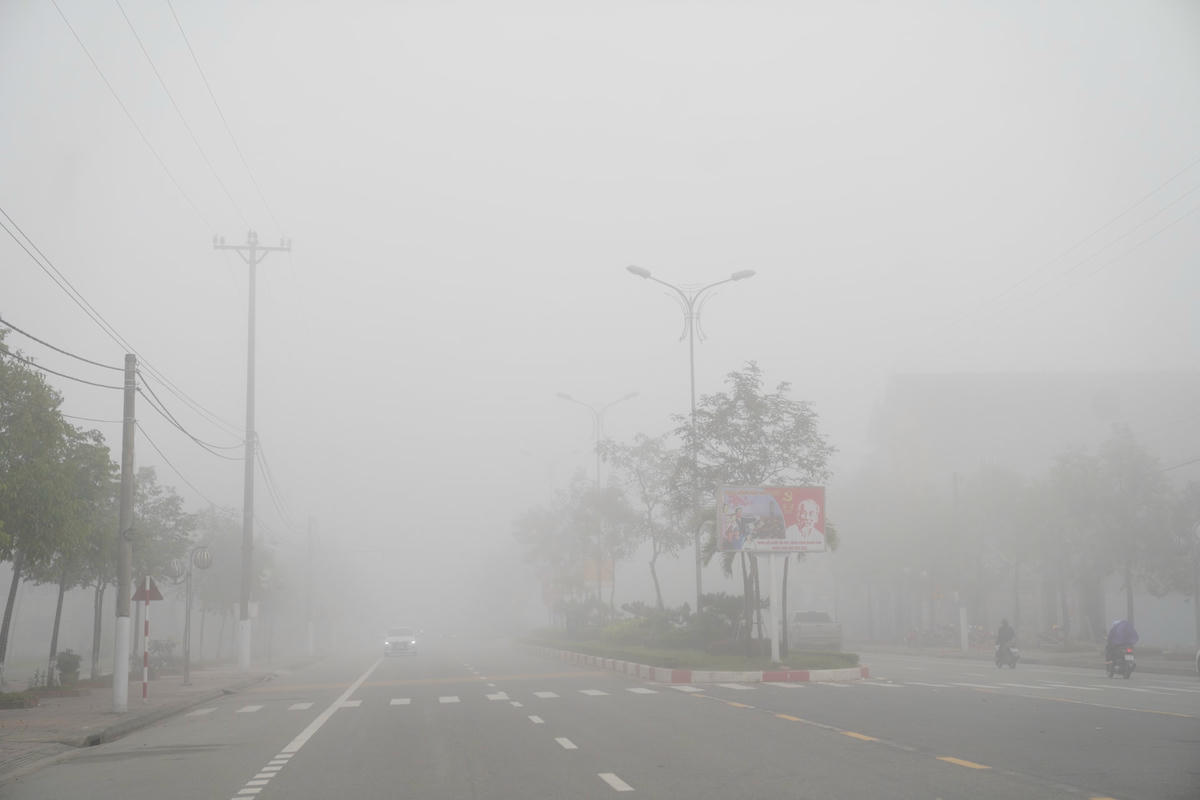 Những ngày qua, tại nhiều tuyến đường chính của TP Hà Tĩnh sương mù bao phủ trắng xóa khiến tầm nhìn của người tham gia giao thông bị hạn chế, khó khăn trong việc di chuyển.
