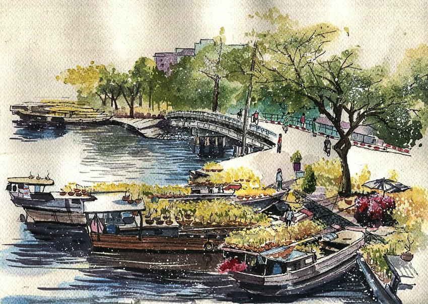 Họa sĩ Trần Thùy Linh, người gốc Hà Nội, 10 năm qua đã chuyển vào sống tại TPHCM cũng đã được gây cảm hứng để viết về vẽ. Chị đã xuất bản tập tản văn “Sài Gòn những mùa yêu”. Trần Thùy Linh định nghĩa về siêu đô thị này rất khác lạ. Đó là một đại đô thị xộc xệch, chộn rộn, ấy vậy nhưng trong mỗi ngóc ngách của nó, cứ ẩn hiện những màu sắc tuyệt mỹ mà càng ngắm, càng khám phá lại càng thích thú.