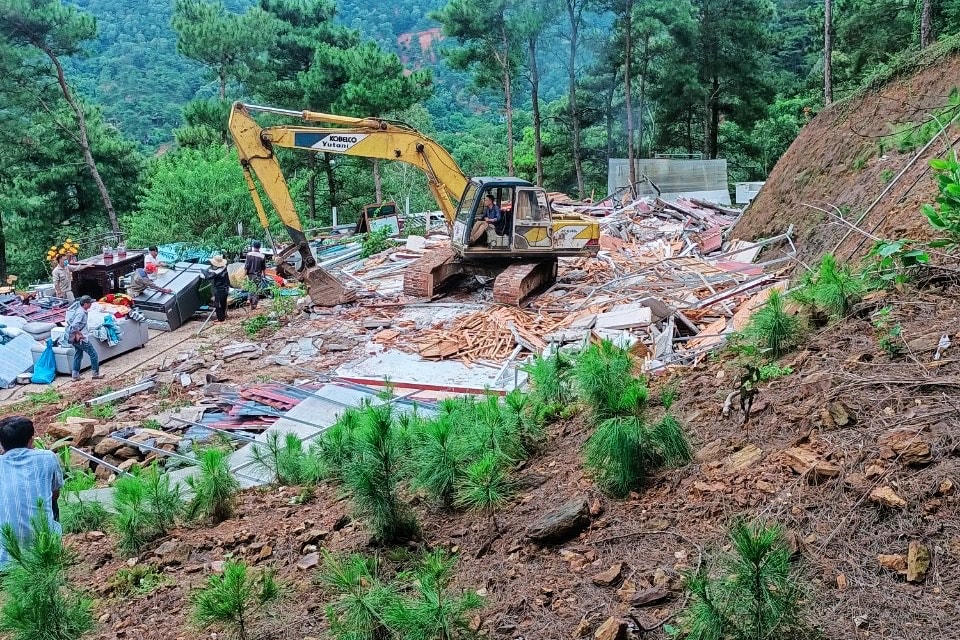 Tại khu vực đồi Dõng Chum, nơi xảy ra vụ sạt lở vùi lấp hàng loạt ô tô, lực lượng chức năng đã cưỡng chế, tháo dỡ các công trình xây sai phép trên đất rừng phòng hộ.