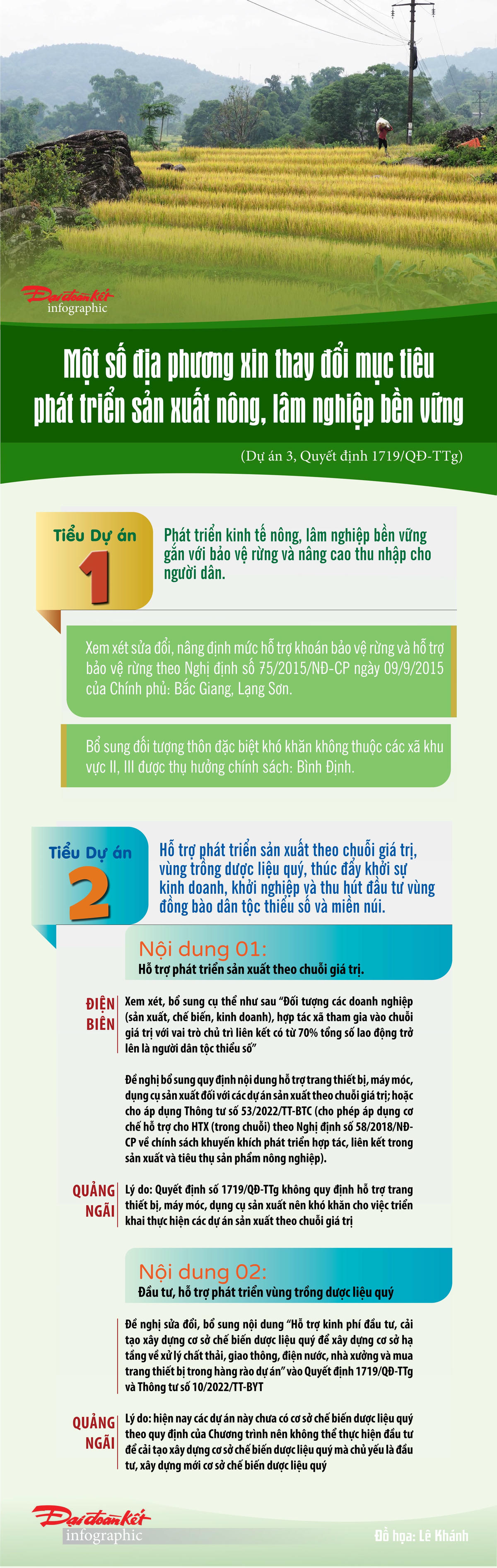 Theo như Quyết định 1719/QĐ-TTg, Dự án 3 là dự án liên quan đến phát triển sản xuất nông, lâm nghiệp bền vững. Qua quá trình thực hiện, một số địa phương đã đề nghị được thay đổi mục tiêu của một số tiểu dự án.