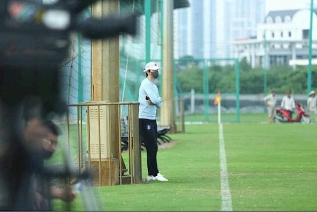 Vị HLV người Hàn Quốc đứng lặng lẽ quan sát buổi tập của thầy trò HLV Hoàng Văn Phúc. Nhiều khả năng, sau trận đấu giữa HA Gia Lai và Hà Nội sắp tới, ông Hoàng Văn Phúc sẽ thôi dẫn dắt Hà Nội FC để nhường vị trí cho nhà cầm quân người Hàn Quốc.