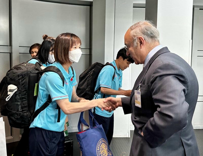 Chiều tối 5/6 theo giờ địa phương, chuyến bay của thầy trò HLV Mai Đức Chung hạ cánh tại sân bay quốc tế Frankfurt. Ngay khi vừa hạ cánh, ĐT nữ Việt Nam nhận được sự chào đón nhiệt tình từ phía Lãnh sự quán Việt Nam tại Frankfurt. Cán bộ lãnh sự quán đã trực tiếp tới sân bay và tạo điều kiện thuận lợi cho đội trong quá trình nhập cảnh.
