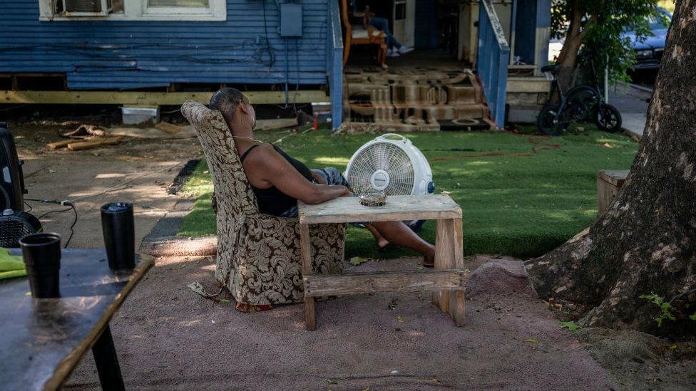 Người phụ nữ 63 tuổi đang lau mồ hôi trên mặt tại một khu nhà ở Indianapolis khi điều hòa bị cắt vào tuần trước. Bể bơi là một địa điểm được nhiều người Mỹ ưa thích lui tới giải nhiệt. Người tham gia một lễ hội âm nhạc đang đứng trước những chiếc quạt khổng lồ trong nắng nóng. Cháy rừng cũng diễn ra triền miên. Mức nhiệt tại nhiều vùng ở Mỹ đã vượt 37 độ C.