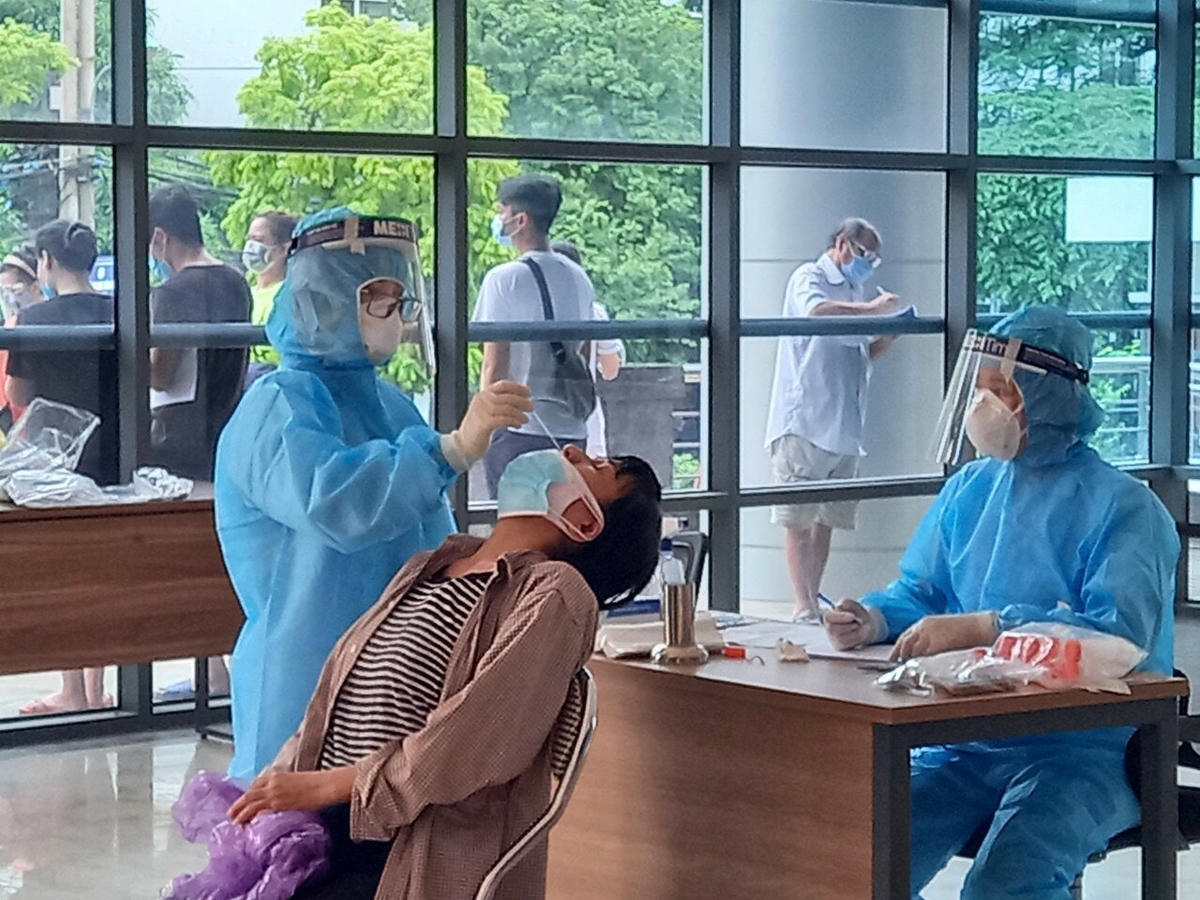 Khi đến điểm lấy mẫu, các nhân viên y tế mỗi người một việc, sau khi mặc xong bộ đồ bảo hộ là ai bắt tay vào công việc của mình. Người tập trung lấy thông tin khai báo, người sắp xếp những người dân lấy mẫu xếp hàng, người tập trung lấy mẫu xét nghiệm. Ai cũng cần mẫn thực hiện nhiệm vụ của mình. Phía bên ngoài, các nhân viên y tế phường đứng theo từng điểm để kê khai thông tin của người dân trên địa bàn, sau đó chuyển giao thông tin cho y tế quận để thực hiện lấy mẫu xét nghiệm.