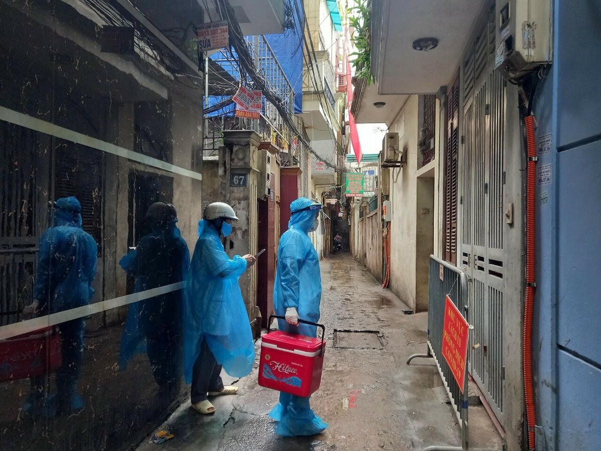 Lịch lấy mẫu xét nghiệm của Trung tâm y tế quận Đống Đa (Hà Nội) buổi chiều: Một số anh chị em tập trung lấy mẫu cho hơn 400 trường hợp tại Đặng Tiến Đông, một số khác chia nhỏ lấy mẫu tại vài điểm và 1 nhân viên y tế sẽ phụ trách lấy mẫu cho các trường hợp F1 tại nhà. Tất cả chuẩn bị lên đường. Nhóm phóng viên báo Đại Đoàn Kết cũng chia nhau theo hai ngả, “theo chân” các nhân viên y tế.
