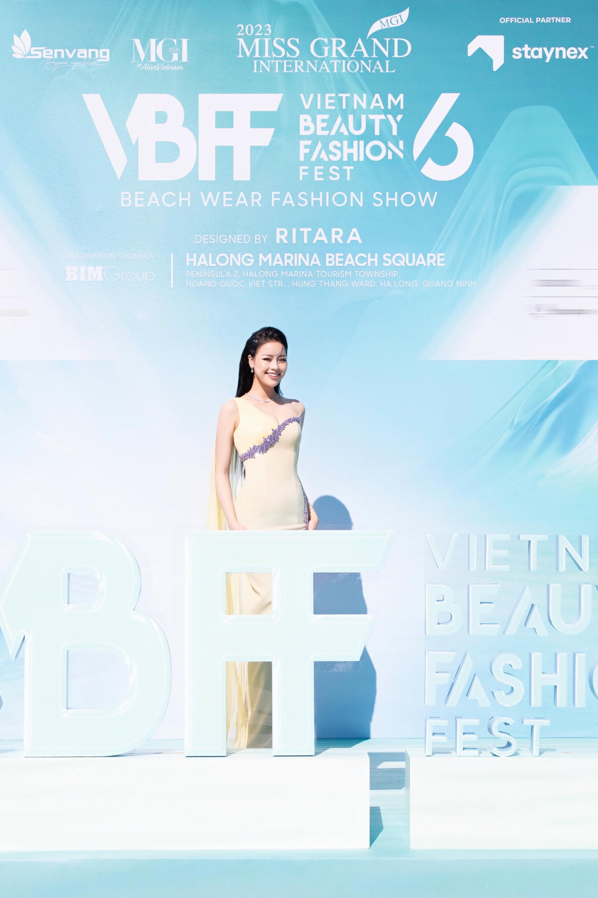 Kết thúc lịch trình tại Thủ đô Hà Nội với loạt sự kiện hấp dẫn, dàn thí sinh của cuộc thi Hoa hậu Hoà bình Quốc tế - Miss Grand International tiếp tục hành trình đến với thiên đường du lịch miền Bắc - Thành phố Hạ Long.Các người đẹp vô cùng hào hứng với điểm đến tiếp theo trong chuyến hành trình đầy hấp dẫn này, trong đó điểm nhấn là Vịnh Hạ Long...Vietnam Beauty Fashion Fest 6 (VBFF) do đạo diễn Hoàng Nhật Nam sáng lập lần này là chủ đề “Beach wear Fashion Show”, các Hoa hậu Hòa bình từ khắp nơi trên thế giới sẽ được trình diễn các bộ cánh nhẹ nhàng, bay bổng hợp với không khí dạo biển, bên cạnh khung cảnh xinh đẹp với dải cát trắng và biển Bãi Cháy xanh ngát, xung quanh cũng được trang trí các khinh khí cầu rực rỡ sắc màu.Tại ngày tập luyện chuẩn bị cho show diễn, khác xa với những hình ảnh mọi người thường nghĩ đến các cô gái sẽ diện các trang phục thoải mái, dễ di chuyển.Các thí sinh Miss Grand International 2023 rất chỉn chu khi chọn cho mình những layout được thiết kế đặc biệt, khoe trọn hình thể đẹp mắt, thu hút toàn thể ánh nhìn từ những người dân xung quanh.Theo lịch trình được công bố trước đó, các sự kiện bên lề của Miss Grand International 2023 tại Việt Nam sẽ được trình diễn đa phần vào buổi sáng, theo Đạo diễn Hoàng Nhật Nam cho biết, vì đây là cuộc thi quốc tế nên đa số các nước sẽ trái múi giờ, việc tổ chức buổi sáng nhằm đảm bảo cho nhiều quốc gia, người hâm mộ của các nàng hậu thế giới dễ dàng theo dõi hành trình của cuộc thi hơn. Tại đây, hơn 70 người đẹp từ khắp thế giới sẽ trình diễn thời trang với những bộ cánh đi biển. Đây là sự kiện buổi diễn đầu tiên trong chuỗi Vietnam Beauty Fashion Fest tại Miss Grand International 2023.Chương trình có sự tham gia của Minh Nhàn, Tâm Như - Á hậu 2 và Á hậu 4 Miss Grand Vietnam 2023. Là những người đẹp bước ra từ Miss Grand, hai cô nàng nhận được nhiều lời khen bởi vẻ ngoài sắc sảo hút mắt và nhan sắc thăng hạng chỉ sau đăng quang 2 tháng.Á hậu Đào Thị Hiền là người đẹp bước ra từ Miss World Vietnam duy nhất xuất hiện trong sự kiện đầu tiên tại Hạ Long lần này. Diện trang phục tông vàng, cô nàng chiếm trọn ánh nhìn với vẻ đẹp ngọt ngào nhưng không kém phần sắc sảo của mình. Hoa hậu Hòa bình Quốc tế 2022 Isabella Menin diện tông đỏ cực ấn tượng và thần thái, cô thả dáng tự tin trên thảm đỏ của Vietnam Beauty Fashion Fest 6. Ngay từ những ngày đầu khi đến Việt Nam đồng hành cùng Miss Grand International 2023, Isabella đã luôn bày tỏ sự yêu thích của mình dành cho mảnh đất hình chữ S này.