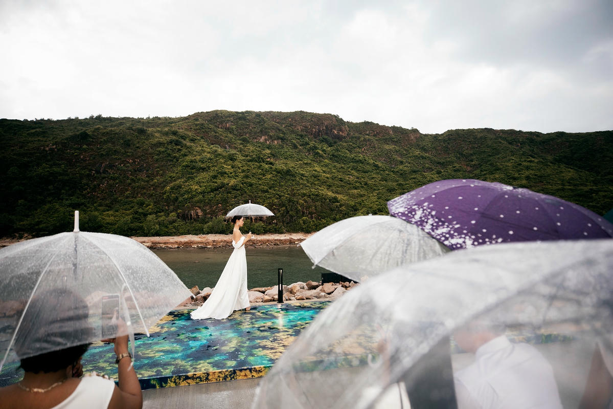 Mặc điều kiện thời tiết mưa lớn, Top 37 thí sinh Miss World Việt Nam 2022 vẫn thể hiện sự chuyên nghiệp và hoàn thành phần catwalk trên sàn runway dài 300 m.