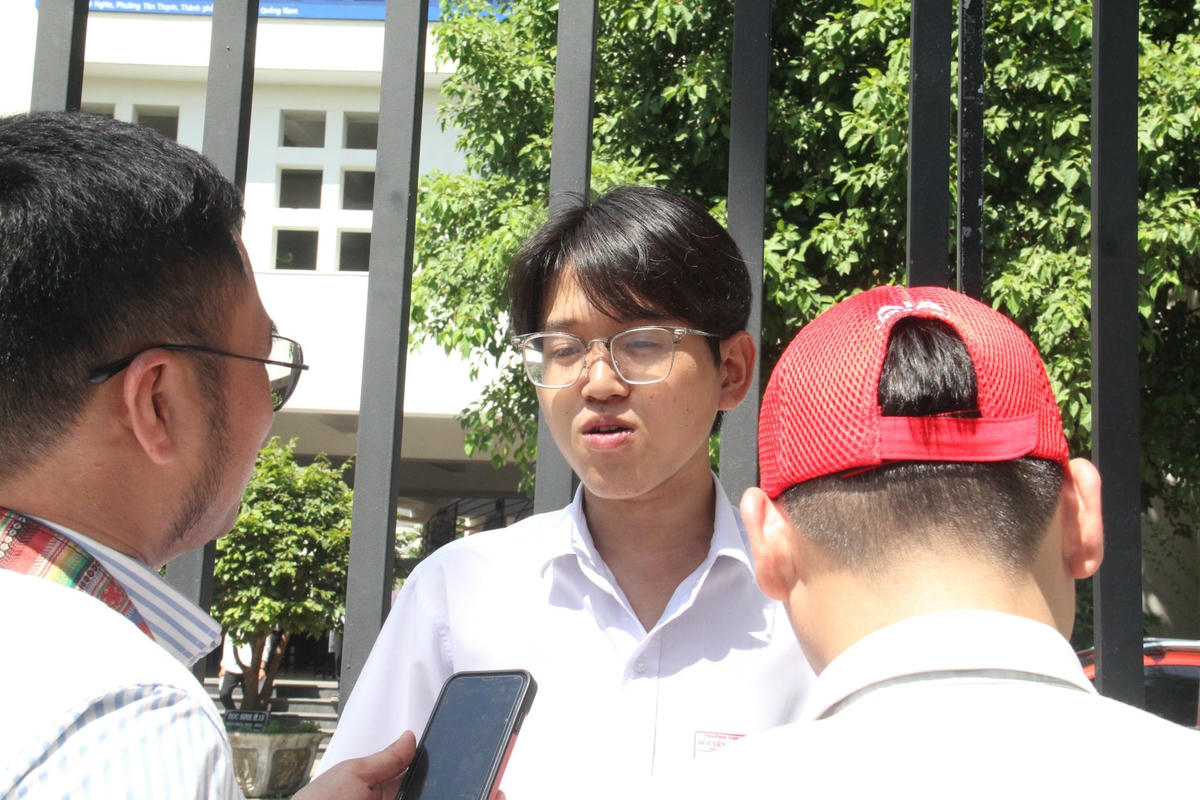 Ghi nhận của chúng tôi, tại điểm thi Trường THPT Chuyên Nguyễn Bỉnh Khiêm,TP Tam Kỳ, tỉnh Quảng Nam, đa số thí sinh bước ra khỏi điểm thi với tâm lý thoải mái. Nhiều thí sinh nở nụ cười rạng rỡ sau khi hoàn thành bài thi môn Ngữ văn.
