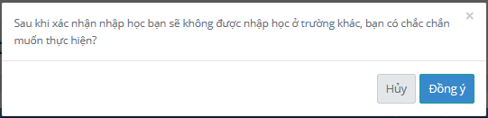 Bước 5: Nhấn Đồng ý để hoàn thành việc xác nhận nhập học.