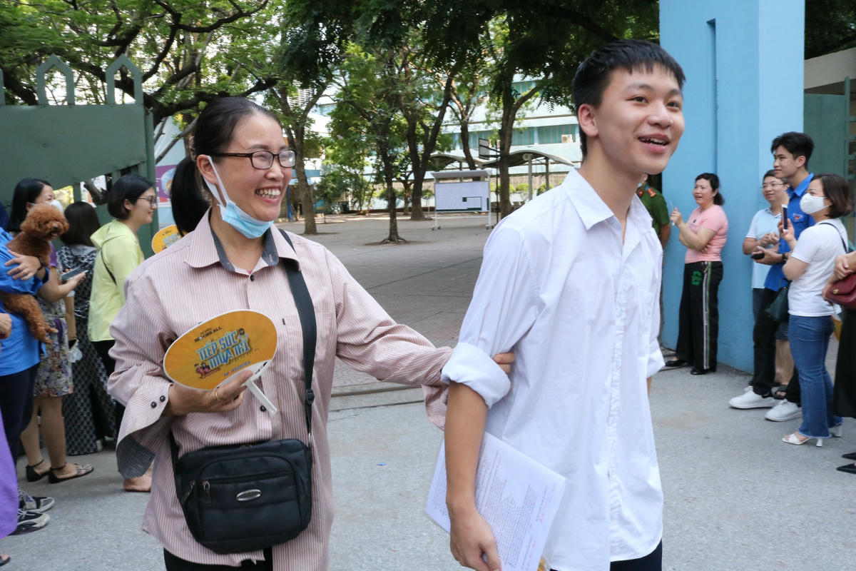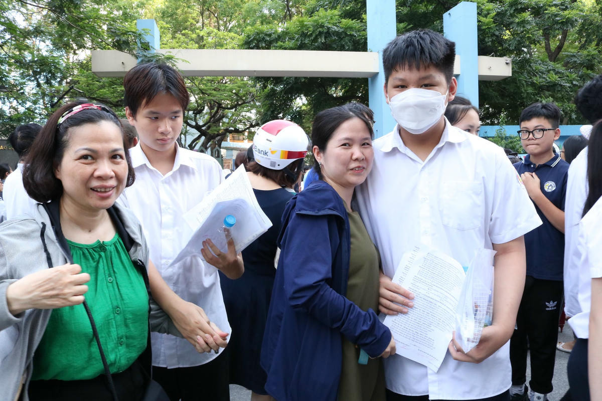 Thí sinh đầu tiên ra khỏi điểm thi tại Trường THPT Nguyễn Trãi-Ba Đình.Thí sinh làm bài thi môn Tiếng Anh trong 60 phút, bắt đầu từ 14h. Đề thi môn Ngoại ngữ gồm 40 câu trắc nghiệm.Theo ghi nhận của phóng viên, hầu hết thí sinh ra khỏi điểm thi với tâm trạng phấn khởi. Đa số các em đều nhận định, đề thi vừa sức, nằm trong nội dung đã được thầy cô ôn tập, tuy nhiên vẫn có độ phân hóa học sinh khá-giỏi.Là một trong số thí sinh ra khỏi điểm thi sớm nhất, em Hồ Thanh Bình, học sinh lớp 9B, Trường THCS Phúc Xá cho biết, đề thi môn Tiếng Anh khá dễ nên em làm dư thời gian 5-10 phút. “Với đề thi này, các bạn từ học lực trung bình cũng dễ dàng vượt qua nếu ôn tập theo hướng dẫn của thầy cô. Em làm được hết bài và dự kiến đạt khoảng trên 9 điểm”, Bình chia sẻ.Tương tự, em Nguyễn Gia Hưng, học sinh lớp 9A6, Trường THCS Mạc Đĩnh Chi cho hay, đề thi không khó, nhưng cũng có những câu hỏi để phân loại học sinh. Hoàn thành hai bài thi Ngữ văn và Tiếng Anh, Hưng tương đối hài lòng và tự tin sẽ đỗ vào trường công như mong muốn.Cùng tâm trạng với thí sinh, nhiều phụ huynh đều thấy nhẹ nhõm khi con mình đã vượt qua 2 môn thi của kỳ thi tuyển sinh vào lớp 10 công lập.Anh Dương Văn Vinh, phụ huynh học sinh Trường THCS Chương Dương cho hay: "Con hoàn thành khá tốt hai bài thi Ngữ văn và Tiếng Anh. Tôi như trút được gánh nặng".Sáng 11/6, thí sinh sẽ hoàn thành môn thi cuối cùng là Toán trong 120 phút, bắt đầu từ 8h.