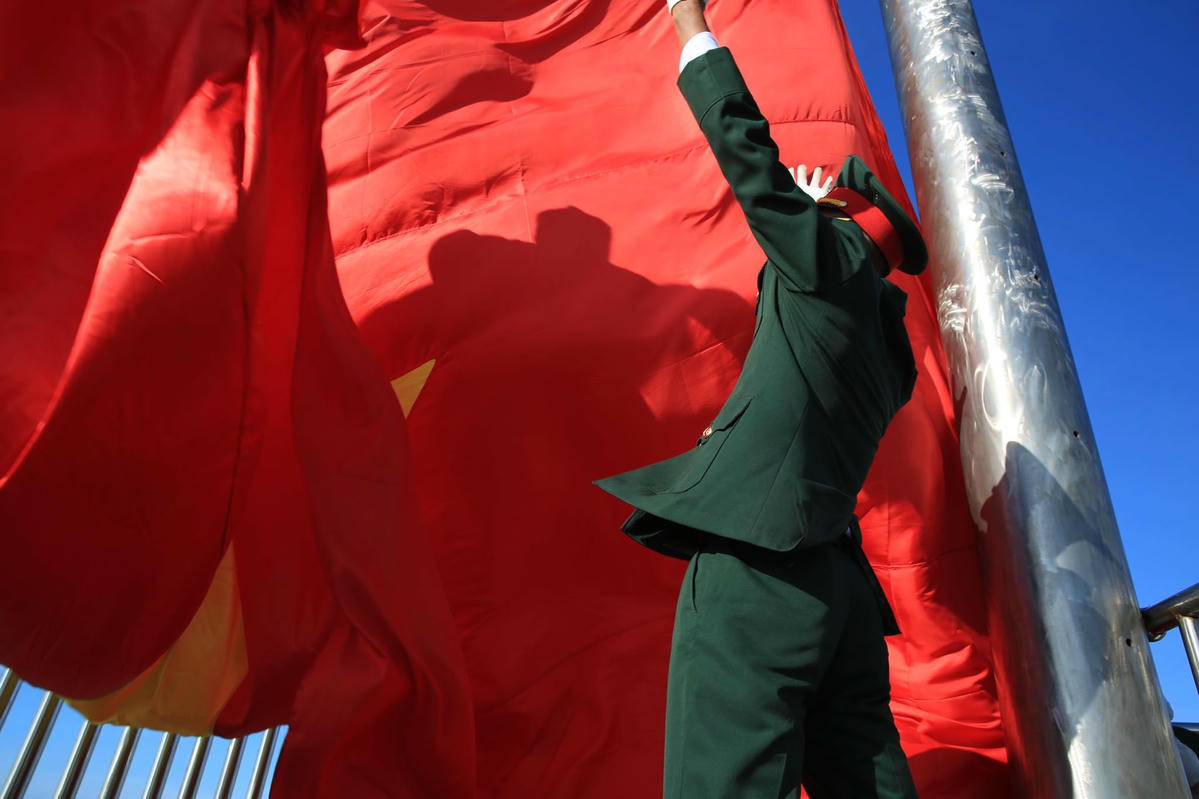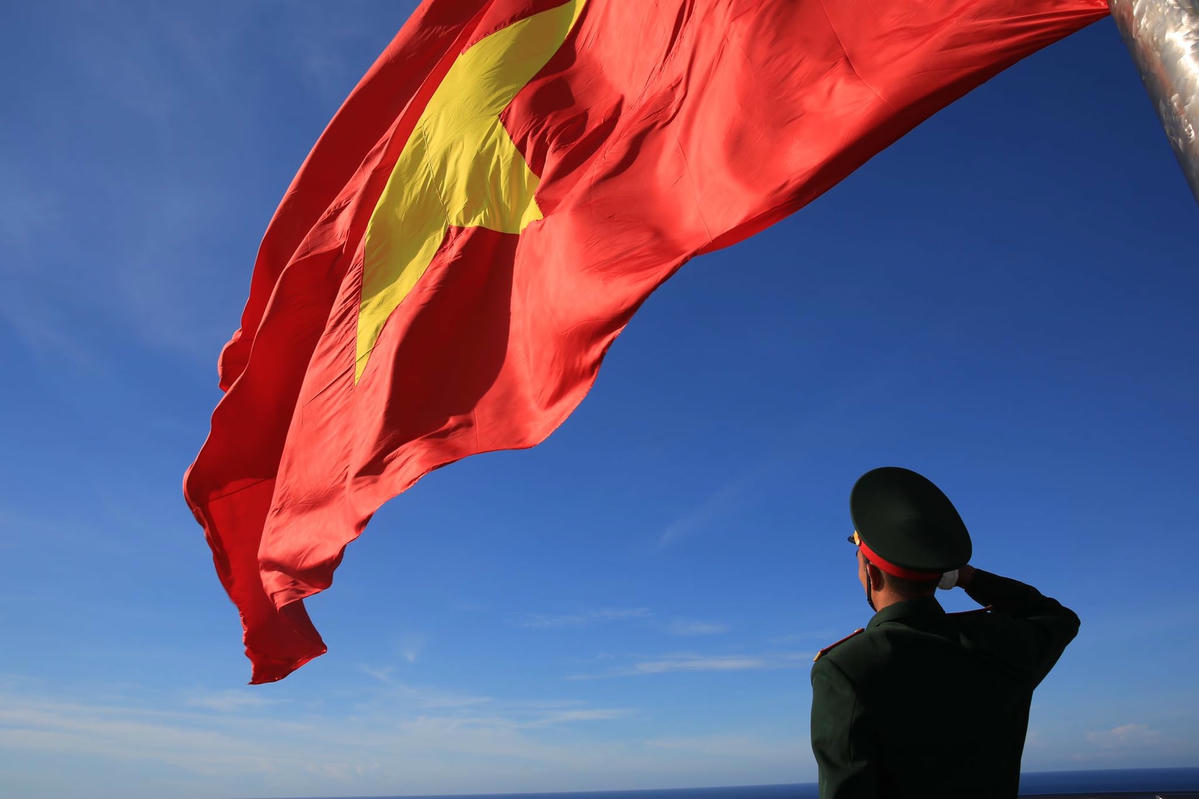 34 chiến sĩ thuộc 3 lực lượng hải quân, biên phòng và cảnh sát biển sát cánh rước lá cờ tổ quốc lên cột cờ chính trên đỉnh Thới Lới, nơi cao nhất đảo Lý Sơn, để thực hiện nghi thức kéo cờ Tổ quốc.