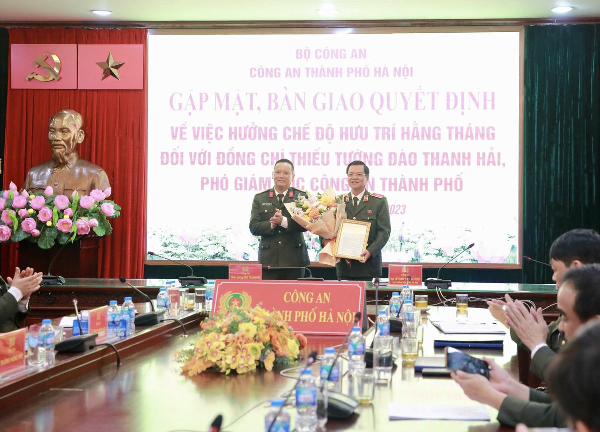 Ngày 15/3, Công an TP Hà Nội tổ chức trao quyết định về việc hưởng chế độ hưu trí cho Thiếu tướng Đào Thanh Hải – nguyên Phó Bí thư Đảng ủy, Phó Giám đốc Công an TP Hà Nội.