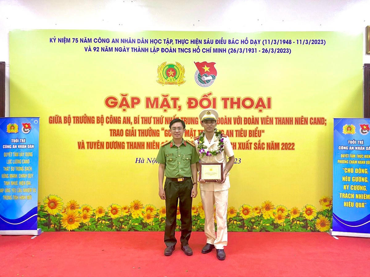 Với những thành tích nổi bật trong quá trình công tác, ngày 24.3 vừa qua, thiếu uý Nguyễn đã vinh dự được Bộ Công an lựa chọn vinh danh là "Gương mặt trẻ Công an tiêu biểu" và tuyên dương thanh niên Công an xã có thành tích xuất sắc năm 2022 diễn ra tại TP Hà Nội.