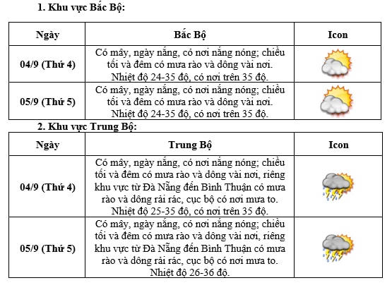 Thời tiết dịp lễ khai giảng từ 4 đến 5/9