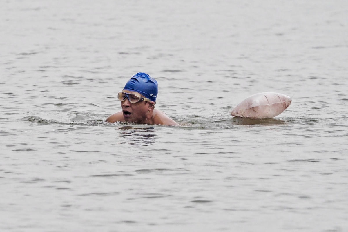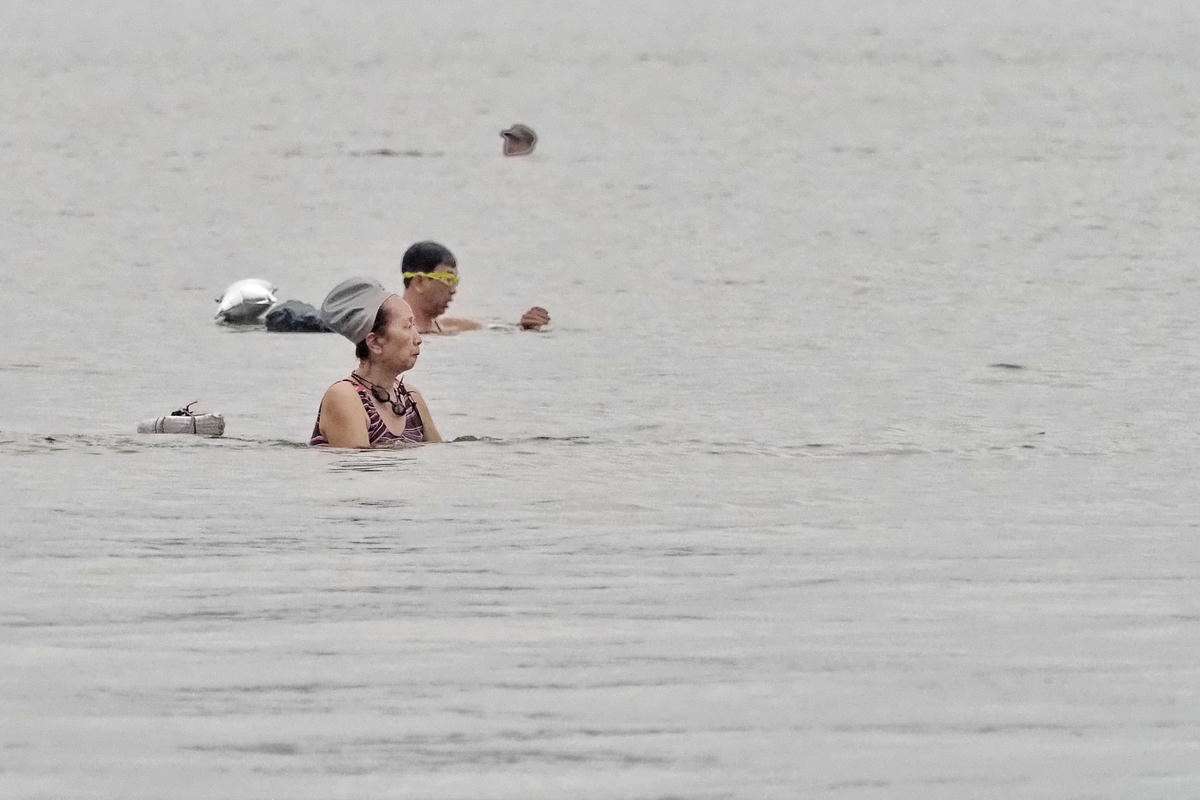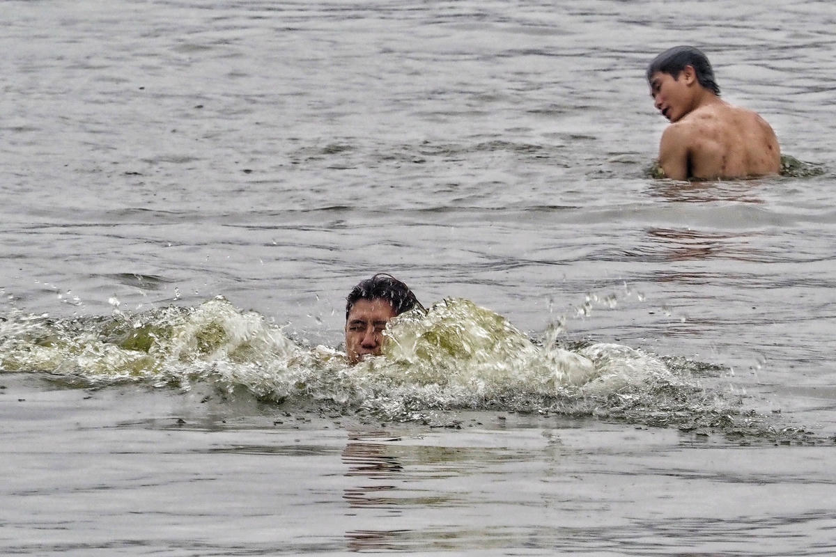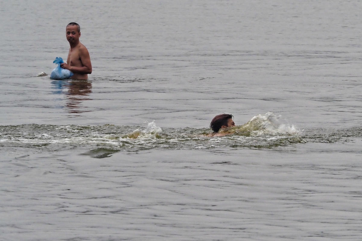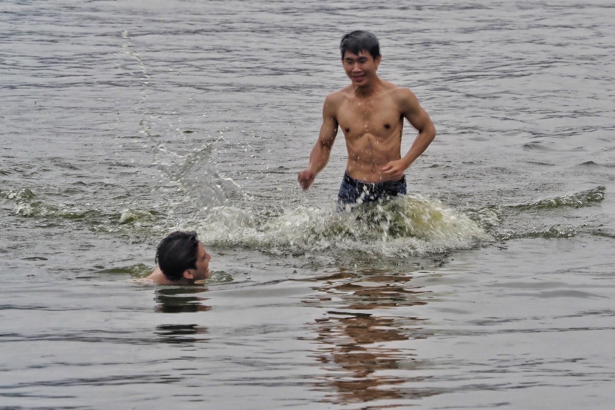Thời tiết oi bức, người dân đua nhau ra Hồ Tây bơi để giải nhiệt