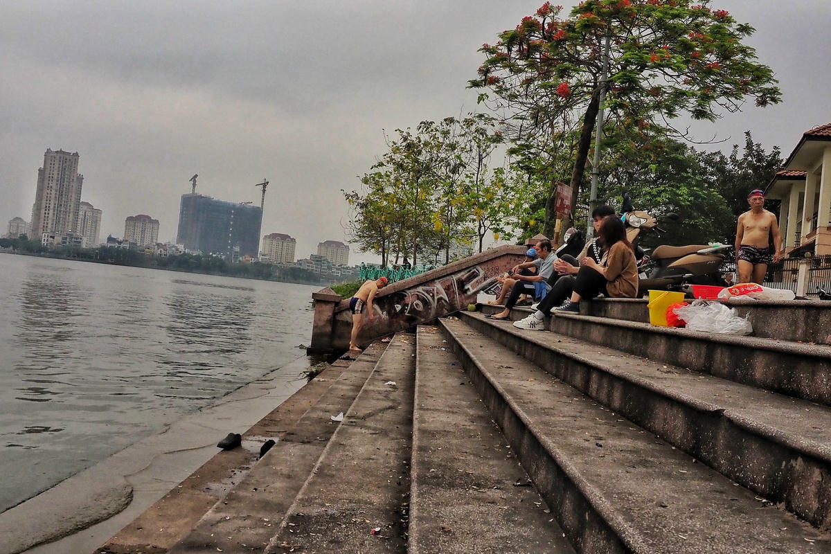 Mấy ngày nay, thời tiết Hà Nội liên tục tăng cao khiến người dân tỏ ra nóng bức, mệt mỏi. Vì vậy, nhiều người dân Hà Nội lựa chọn một góc hồ Tây để “giải nhiệt” gây mất an toàn.