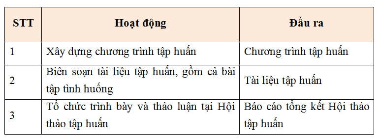 - Sơ bộ đề xuất chương trình tập huấn.