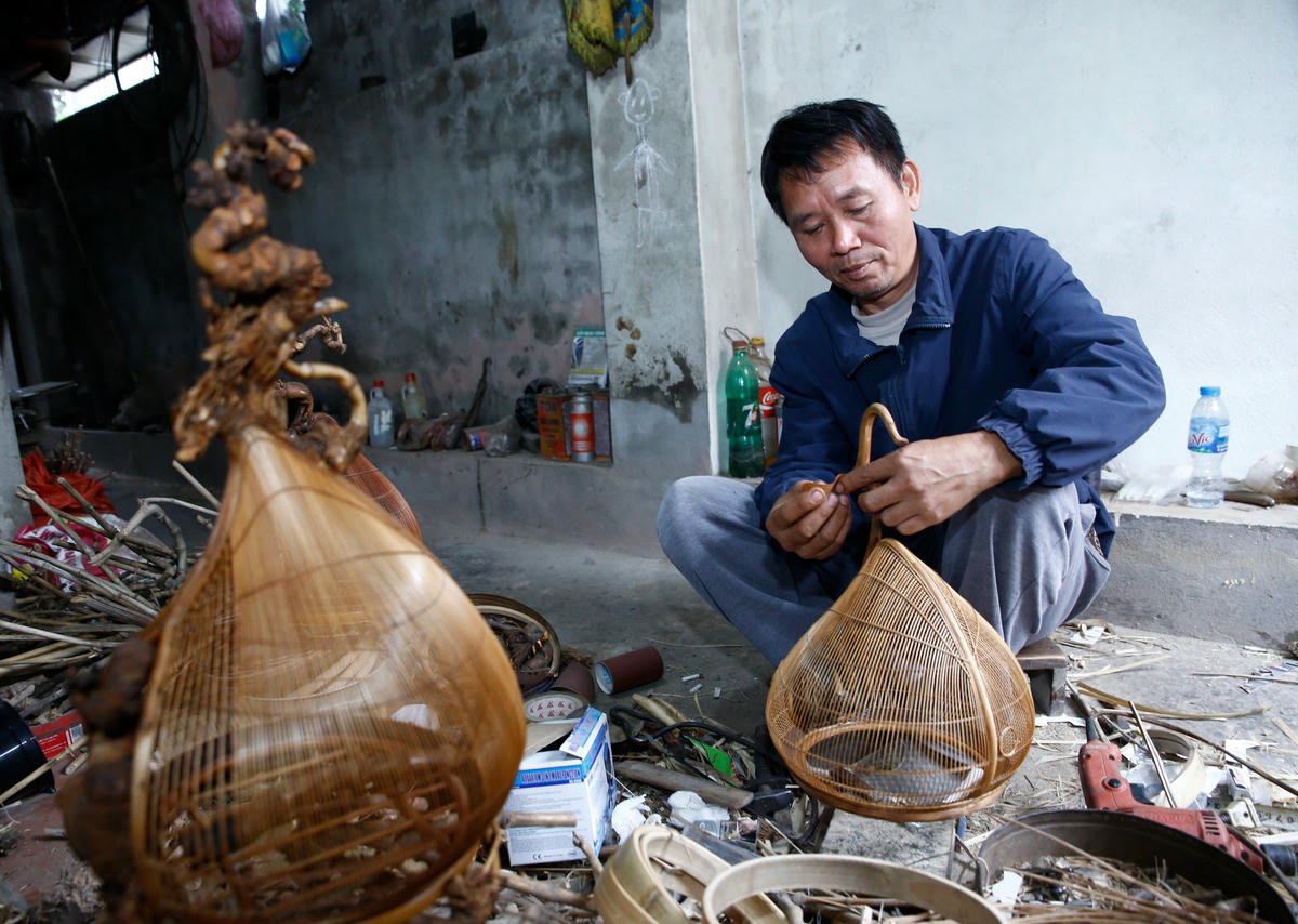 Bù lại, ông khoe mình vừa bán được bộ bàn ghế này cho một người yêu nghệ thuật thủ công ở tỉnh Hà Nam với giá 400 triệu đồng, chỉ chờ hết “tháng ngâu” khách sẽ về lấy. Riêng những chiếc lồng chim, ông Sình cho biết cũng phải mất một, hai năm ông mới có thể làm xong. “Thường ngẫm ngợi, có ý tưởng lên khuôn rồi thì phải lang thang đi tìm kiếm vật liệu phù hợp hoặc ngược lại. Mỗi cái lồng tôi đều gửi gắm vào đó một cái tích, cái thì lấy từ sự tích bánh chưng bánh dày, cái thì từ tích mẹ Âu Cơ đẻ ra bọc trăm trứng. Không cái nào giống cái nào, hoàn toàn độc bản”.