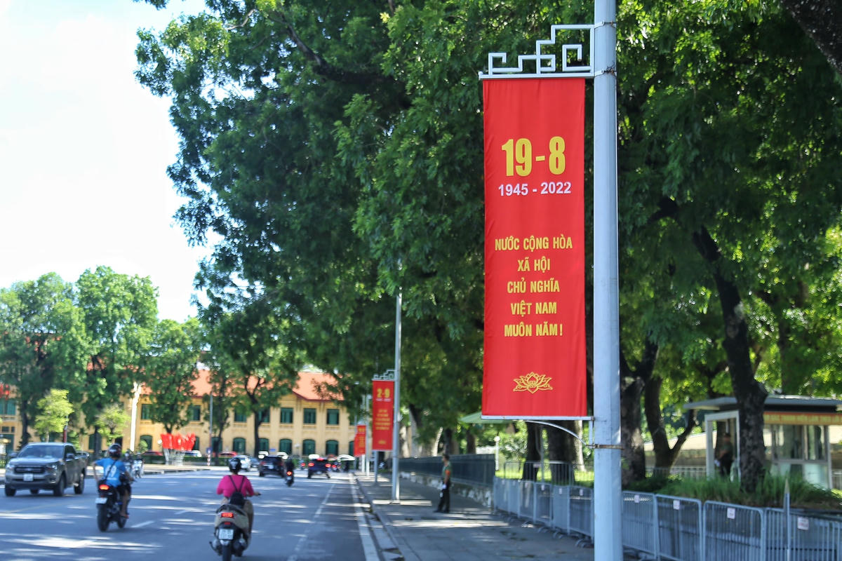 Những ngày gần đây, khắp các tuyến phố trên địa bàn Thủ đô Hà Nội đã được trang trí các băng rôn, khẩu hiệu... chào mừng kỷ niệm 77 năm Cách mạng Tháng Tám và Quốc Khánh 2-9.Cách đây 77 năm, Chủ tịch Hồ Chí Minh đã đọc bản Tuyên ngôn độc lập, khai sinh nước Việt Nam Dân chủ Cộng hòa. Ngày mùng 2-9 là một ngày lễ đặc biệt quan trọng đối với người dân Việt Nam. Việc trang hoàng cờ hoa mang ý nghĩa quan trọng, nhắc nhở toàn dân, đặc biệt là giới trẻ.Theo ghi nhận của PV tại nhiều tuyến phố như Hùng Vương, Đinh Tiên Hoàng, Thanh Niên... đều rực rỡ sắc đỏ của màu cờ, băng rôn.Khẩu hiệu mang dòng chữ "Nhiệt liệt chào mừng Kỷ niệm 77 năm Quốc khánh Nước Cộng hòa xã hội chủ nghĩa Việt Nam" được trang trí khắp các tuyến phố.Tại Quảng trường Ba Đình, Lăng Chủ tịch Hồ Chí Minh, cờ hoa được treo xung quanh chào mừng ngày lễ lớn của dân tộc.Con đường Hoàng Văn Thụ nối vào Phủ Chủ tịch cũng đã trang hoàng băng rôn, khẩu hiệu.Sắc cờ đỏ, sao vàng tràn ngập tại tuyến phố Lê Hồng Phong để chào mừng ngày lễ lớn.