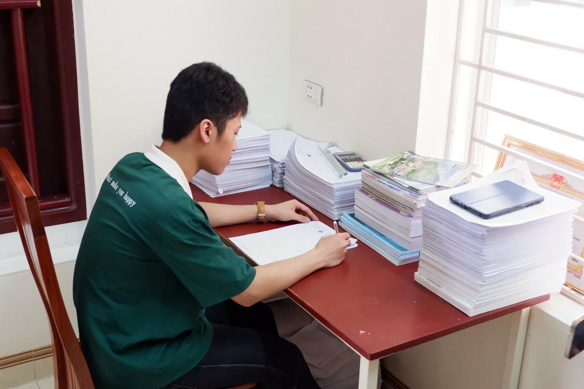 Đặc biệt, gia đình đã sắm hẳn một chiếc máy photocopy công suất lớn phục vụ nam sinh học tập. Trong quá trình luyện đề, Quân nói luôn tự nhìn lại những câu sai để từ đó rút kinh nghiệm hoặc bổ sung kiến thức.