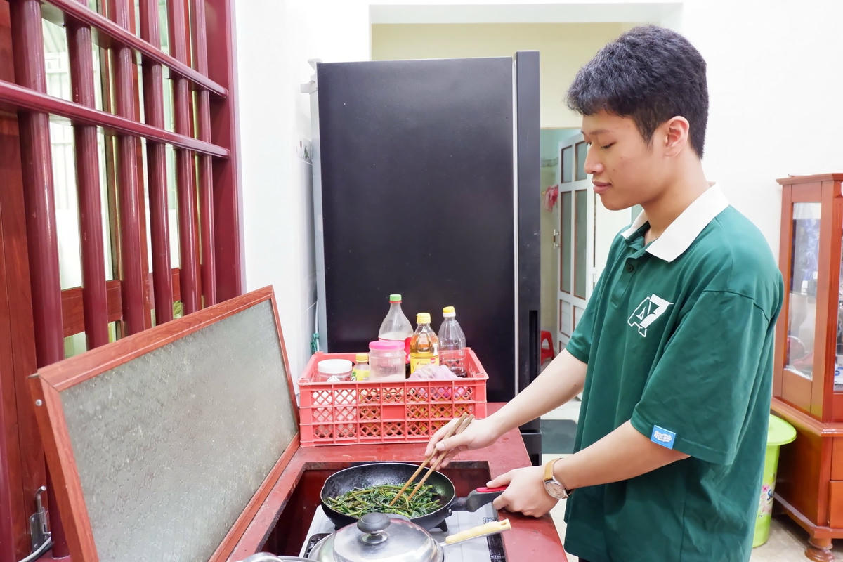 “Như thường nhật thì vào khoảng 6h30’ sáng là em đã dậy để chuẩn bị đi học. Những ngày gần thi, em cố gắng dậy sớm hơn mọi ngày để ôn bài. Bước vào kỳ thi, em cũng lo lắng như mọi người nhưng rồi nghĩ cứ thoải mái bình tĩnh thì sẽ làm tốt nhất và thực tế đã chứng minh là như vậy", chàng trai thủ khoa chia sẻ.