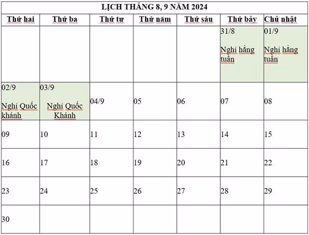 Thủ tướng Chính phủ Phạm Minh Chính đồng ý với đề xuất của Bộ Lao động - Thương binh và Xã hội về việc nghỉ Tết Âm lịch từ ngày 8/2/2024 đến hết ngày 14/2/2024 và nghỉ lễ Quốc khánh từ ngày 31/8/2024 đến hết ngày 3/9/2024.