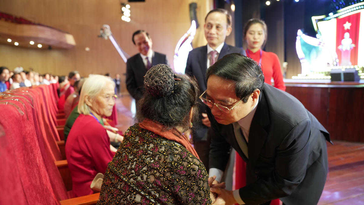 Phát biểu tại Hội nghị, thay mặt lãnh đạo Đảng, Nhà nước, Thủ tướng Chính phủ Phạm Minh Chính trân trọng gửi tới các đồng chí lão thành cách mạng, các Mẹ Việt Nam Anh hùng, Anh hùng Lực lượng vũ trang nhân dân, các thương binh, bệnh binh, thân nhân liệt sĩ, người có công với cách mạng những tình cảm sâu nặng, lòng tri ân sâu sắc và lời thăm hỏi ân cần, thân thiết nhất.