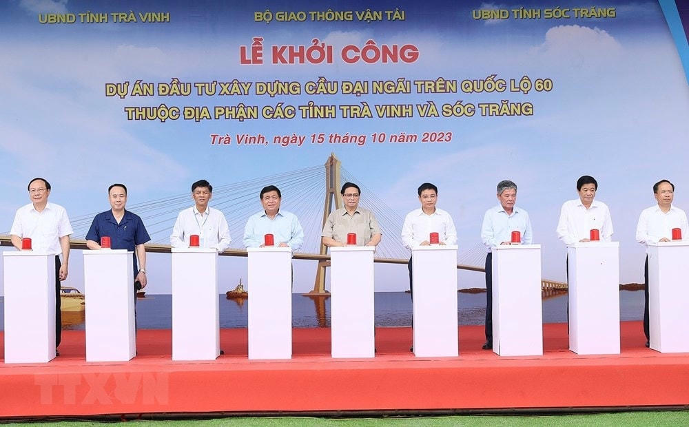 Tại buổi lễ, Thủ tướng Chính phủ Phạm Minh Chính đã phát lệnh và cùng lãnh đạo các Bộ, ngành Trung ương và hai tỉnh Trà Vinh, Sóc Trăng thực hiện nghi thức khởi công Dự án đầu tư xây dựng cầu Đại Ngãi trên Quốc lộ 60 thuộc địa phận các tỉnh Trà Vinh và Sóc Trăng.