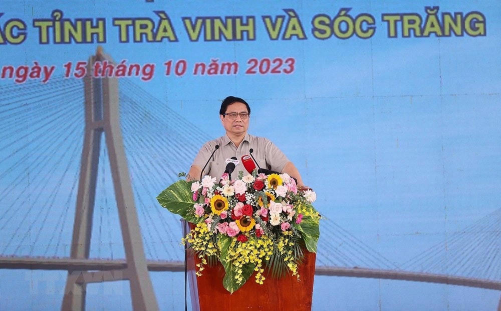 Sáng 15/10, tại tỉnh Trà Vinh, Thủ tướng Chính phủ Phạm Minh Chính dự Lễ khởi công Dự án Đầu tư Xây dựng Cầu Đại Ngãi bắc qua Sông Hậu, nằm trên Quốc lộ 60 nối hai tỉnh Trà Vinh và Sóc Trăng.