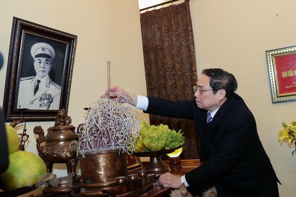 Thủ tướng Chính phủ Phạm Minh Chính đã đến thăm, chúc Tết gia đình, dâng hương tưởng niệm Thủ tướng Phạm Văn Đồng, Đại tướng Võ Nguyên Giáp tại nhà riêng ở Thủ đô Hà Nội.