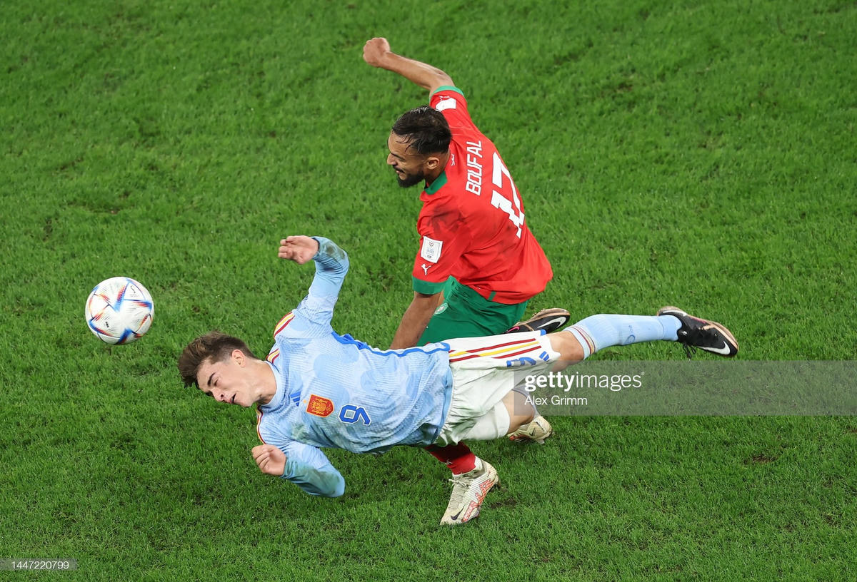 Bước vào thời gian thi đấu hiệp phụ, mọi chuyện cũng không hề được cải thiện. Morocco trải qua 3 trận vòng bảng mà chỉ thua đúng 1 bàn, từ tình huống phản lưới nhà bất khả kháng. Điều đó cho thấy họ không phải đối thủ dễ bị thủng lưới. Trước trận đấu, HLV Walid Regragui tự tin sẽ cho Tây Ban Nha thoải mái cầm bóng, nhưng ở trạng thái “cầm bóng cũng không biết làm gì”. Và ông đã làm đúng như vậy.