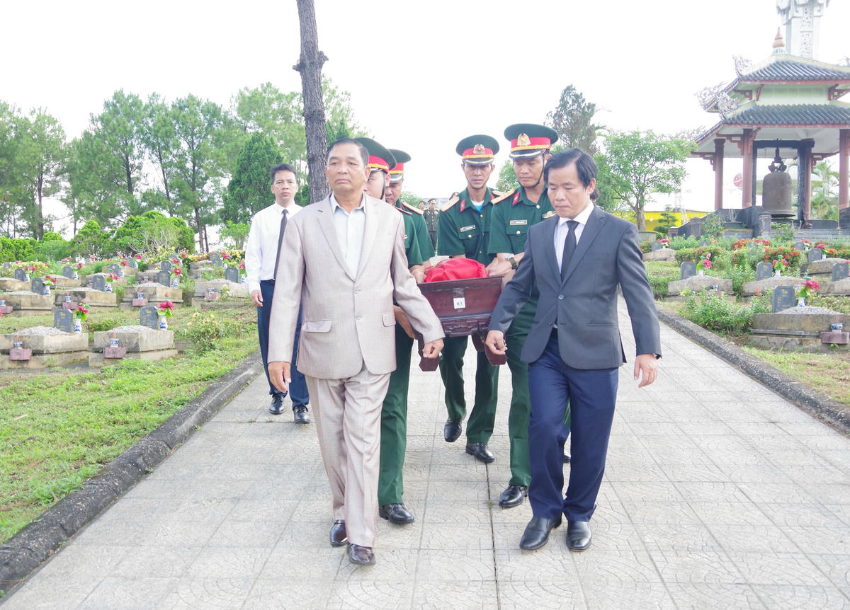 Ông Nguyễn Văn Phương, Chủ tịch UBND tỉnh Thừa Thiên - Huế đọc điếu văn bày tỏ lòng kính trọng và sự biết ơn vô hạn đối với các anh hùng liệt sĩ; đồng thời khẳng định, các anh mãi mãi là tấm gương sáng về tinh thần yêu nước nồng nàn, tinh thần quốc tế cao cả. Hình ảnh của các anh đã hòa quyện với sông núi, trở thành hồn thiêng dân tộc, dệt nên những trang sử hào hùng về tinh thần quốc tế trong sáng của dân tộc Việt Nam, làm nên huyền thoại về người lính tình nguyện Việt Nam bình dị mà oai hùng, trẻ trung mà gan dạ.