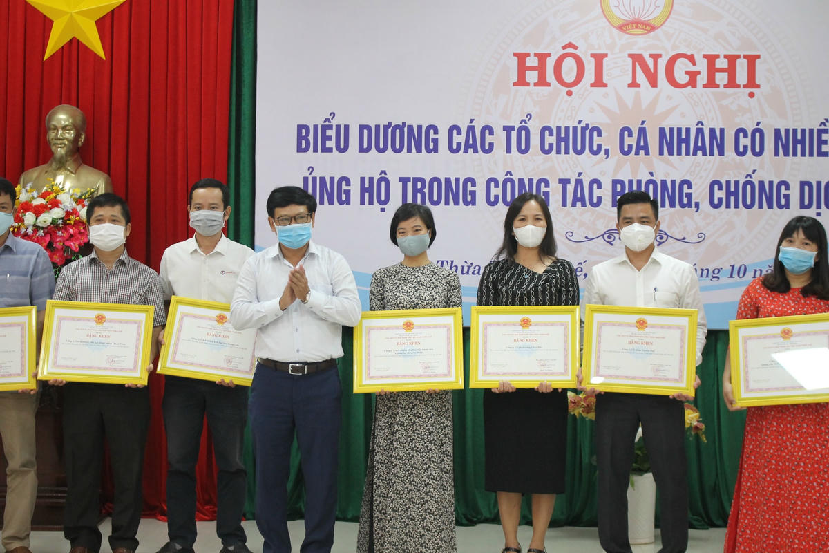 Nhân djp này, hội nghị đã tổ chức trao Bằng khen của Chủ tịch UBND Thừa Thiên-Huế cho 35 tổ chức và 5 cá nhân có nhiều đóng góp cho công tác phòng, chống dịch Covid-19.