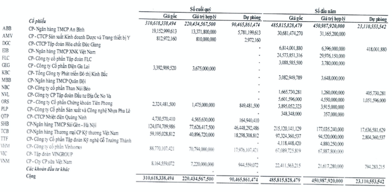 Trong kỳ, lợi nhuận gộp giảm 99% so với cùng kỳ, tương ứng giảm 69,82 tỷ đồng về 0,68 tỷ đồng; doanh thu tài chính giảm 81,6%, tương ứng giảm 43,58 tỷ đồng về 9,82 tỷ đồng; chi phí tài chính tăng 994,9%, tương ứng tăng thêm 117,1 tỷ đồng lên 128,87 tỷ đồng; chi phí bán hàng và quản lý doanh nghiệp giảm 79,3%, tương ứng giảm 6,22 tỷ đồng về 1,62 tỷ đồng và các hoạt động khác biến động không đáng kể.