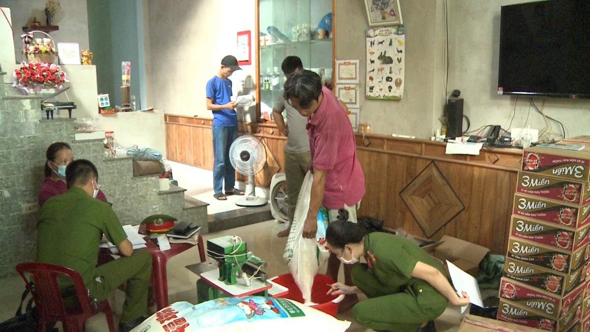 Tại hiện trường, lực lượng Công an đã thu giữ tang vật gồm 430 gói bột ngọt thành phẩm giả nhãn hiệu Ajinomoto và Thái Lan có trọng lượng là 232 kg; 300 kg bột ngọt nguyên liệu có xuất xứ từ Trung Quốc; hơn 1.600 vỏ bao bì nhãn hiệu Ajinomoto và Thái Lan cùng nhiều thiết bị để sản xuất hàng giả.