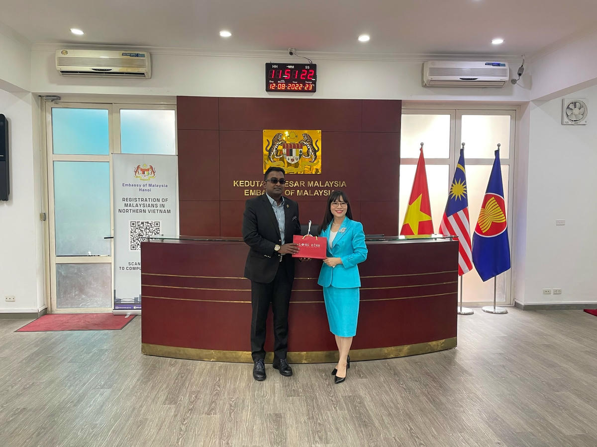 Mới đây, tại trụ sở ĐSQ Malaysia tại Việt Nam Bà Nguyễn Thị Minh Hằng, Chủ tịch Công ty Cổ phần Tập đoàn MHGROUP có buổi làm việc với ông Neermal Shunmugam – Quyền Đại sứ kiêm Tham tán Công vụ ĐSQ Malaysia tại Việt Nam và ông Suresh Kaliyana Sundram – Tham tán kinh tế ĐSQ Malaysia tại Việt Nam.