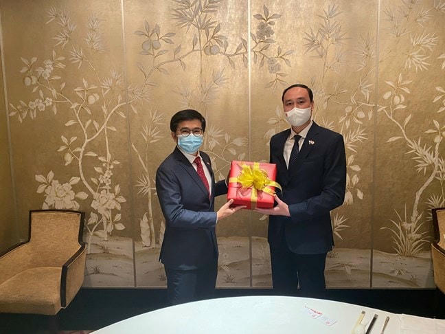 Chiều ngày 25/2, trong khuôn khổ chuyến thăm cấp Nhà nước của Chủ tịch nước Nguyễn Xuân Phúc và Phu nhân tới CH Singapore (24 - 26/2/2022), Phó Chủ tịch UBTƯ MTTQ Việt Nam Phùng Khánh Tài đã có buổi làm việc với Tổng Giám đốc điều hành Hiệp hội Nhân dân Singapore (PA) Lim Hock Yu.