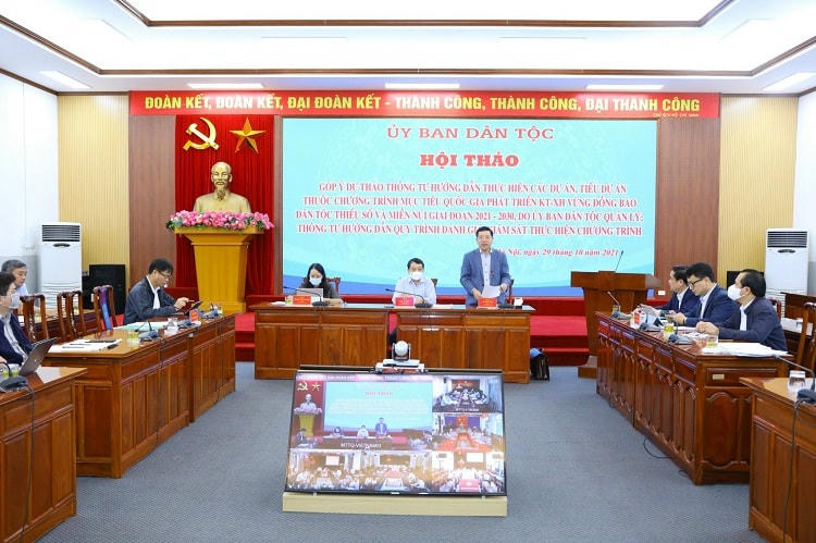 Ngày 29/10, tại Hà Nội, Ủy ban Dân tộc đã tổ chức Hội thảo trực tuyến góp ý dự thảo Thông tư hướng dẫn thực hiện các dự án, tiểu dự án thuộc Chương trình mục tiêu quốc gia (MTQG) phát triển kinh tế - xã hội (KT-XH) vùng đồng bào dân tộc thiểu số (DTTS) và miền núi giai đoạn 2021-2030, do Ủy ban Dân tộc quản lý; Thông tư hướng dẫn quy trình đánh giá, giám sát thực hiện Chương trình MTQG.