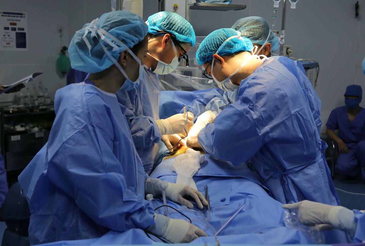 Tối 8/4, 2 ca phẫu thuật ghép tạng đã được triển khai ngay với sự tham gia của nhiều chuyên gia, y bác sĩ, điều dưỡng, kỹ thuật viên chia thành nhiều ekip của 2 bệnh viện. Dưới sự hỗ trợ của các chuyên gia từ Bệnh viện Hữu nghị Việt Đức, các ekip đã phối hợp nhịp nhàng, hoàn thành các ca ghép thận trong hơn 2 giờ phẫu thuật.