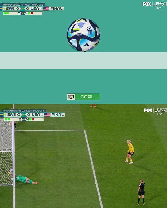Đến lượt đá của nữ Thụy Điển, cú sút của Lina Hurtig đã bị thủ môn Naeher cản phá nhưng bóng lại nảy qua vạch vôi và dù đã rất nỗ lực để vớt bóng ra nhưng thủ môn của đội tuyển Mỹ vẫn không thể cứu cho đội nhà khỏi một bàn thua. Công nghệ VAR đã vào cuộc và trọng tài quyết định đó là một bàn thắng hợp lệ cho nữ Thụy Điển.