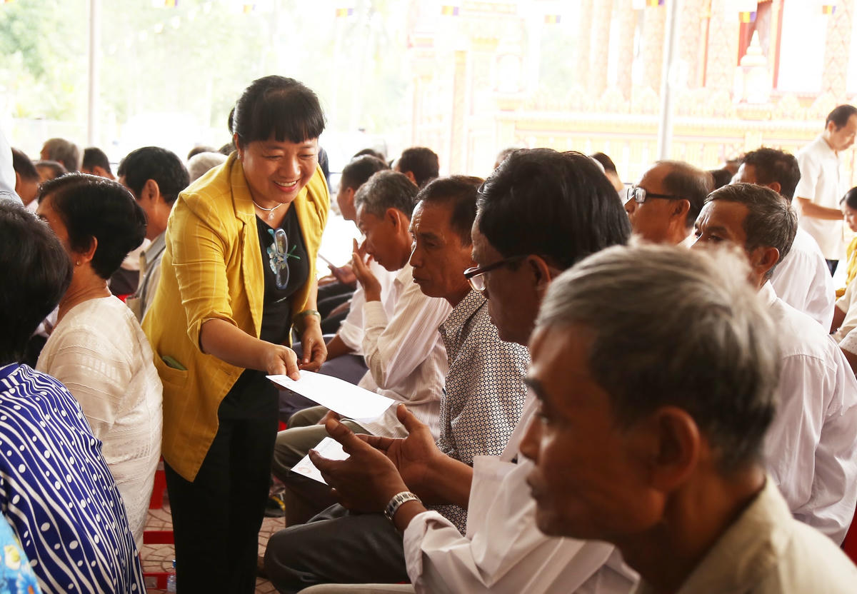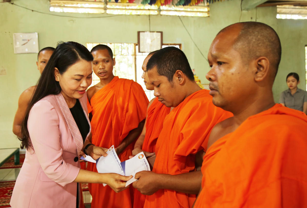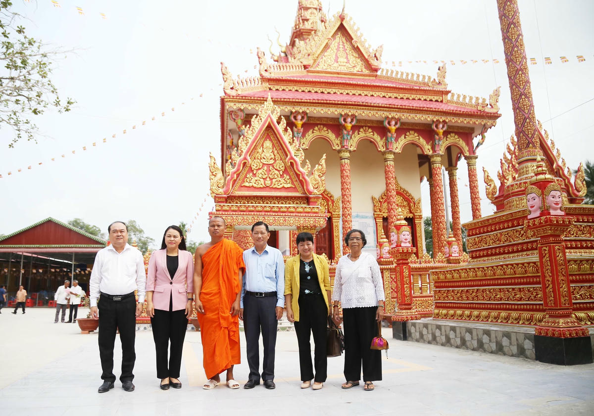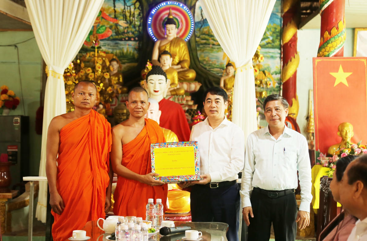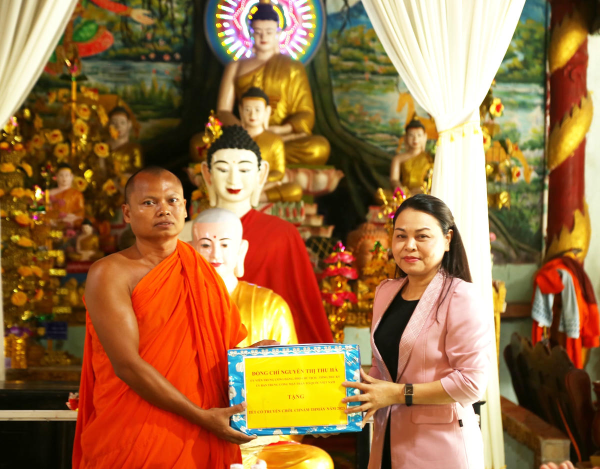 Dịp này, Phó Chủ tịch - Tổng Thư ký Nguyễn Thị Thu Hà thay mặt Ban thường trực UBTƯ MTTQ Việt Nam tặng nhiều phần quà cho Hội Đoàn kết sư sãi yêu nước tỉnh, chùa Chín Ngàn và các vị sư sãi bà con dân tộc Khmer trên địa bàn.