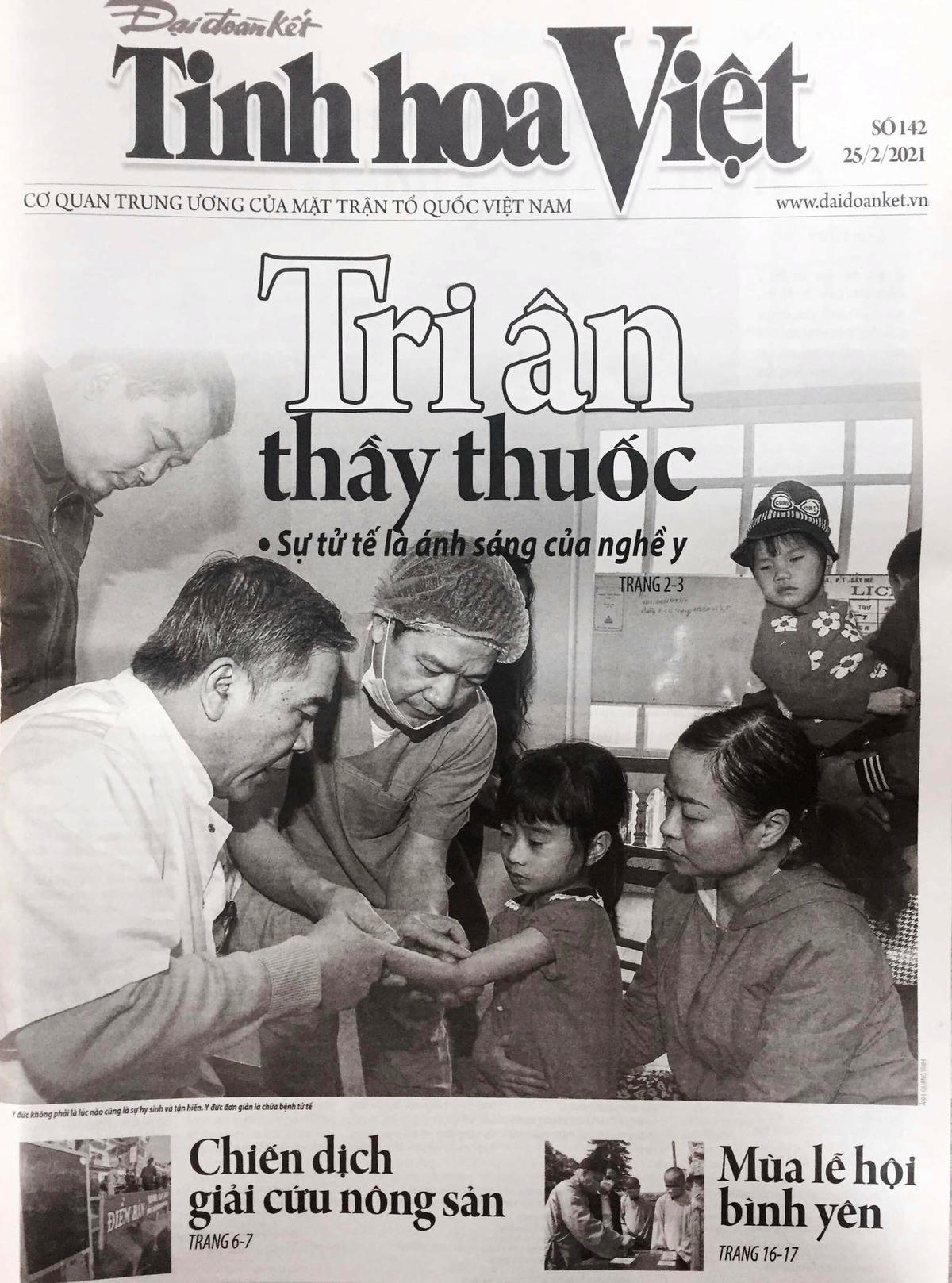 Mời quý độc giả tìm đọc ấn phẩm Tinh hoa Việt (báo Đại Đoàn Kết) số 142, dày 32 trang, in trên giấy tốt, trình bày đẹp, phát hành trên toàn quốc ngày 25/2/2021. Giá: 11.800 đồng.