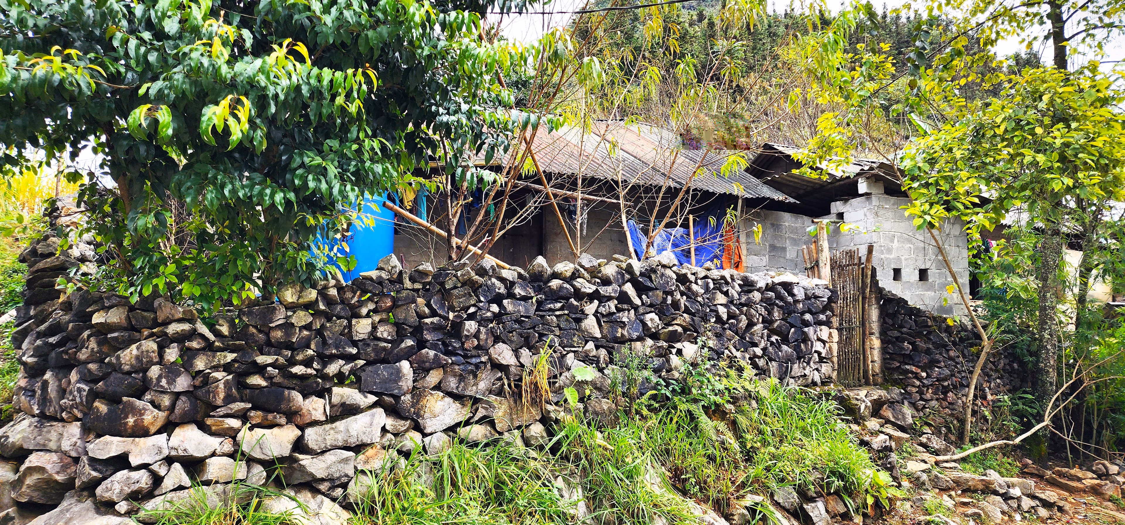 Giờ những ngôi nhà được người dân trong thôn xây mới đều bằng gạch ba banh to, vữa xây nghiền nhỏ từ đá núi trộn cùng xi măng. Điều này khác hẳn với những ngôi nhà trình tường truyền thống đắp thủ công hoàn toàn bằng đất, được lèn bằng phẳng, chắc chắn. Duy chỉ có những hàng rào bằng đá, to, chắc chắn bao quanh nhà là vẫn giữ nguyên.