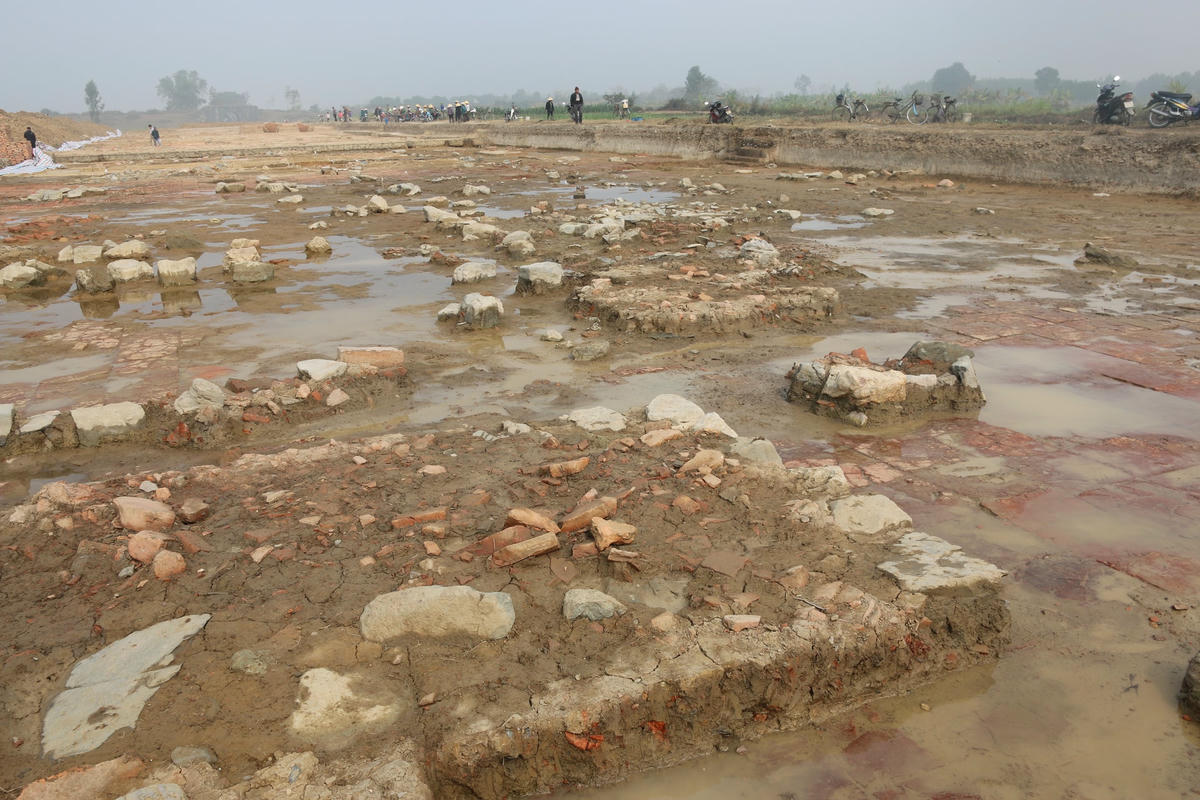 Về di vật, đã tìm thấy nhiều loại hình vật liệu kiến trúc, như gạch trang trí hoa cúc, hoa sen, hoa đồng tiền thời Lý, Trần, hoa dây thời Lê sản xuất tại Thăng Long và nhiều loại hình gạch vuông, gạch chữ nhật, gạch có in chữ Hán được sản xuất tại thành nhà Hồ. Đồng thời, tại các hố khai quật còn tìm thấy khá nhiều mảnh gốm men thời Trần, Hồ và thời Lê Sơ.