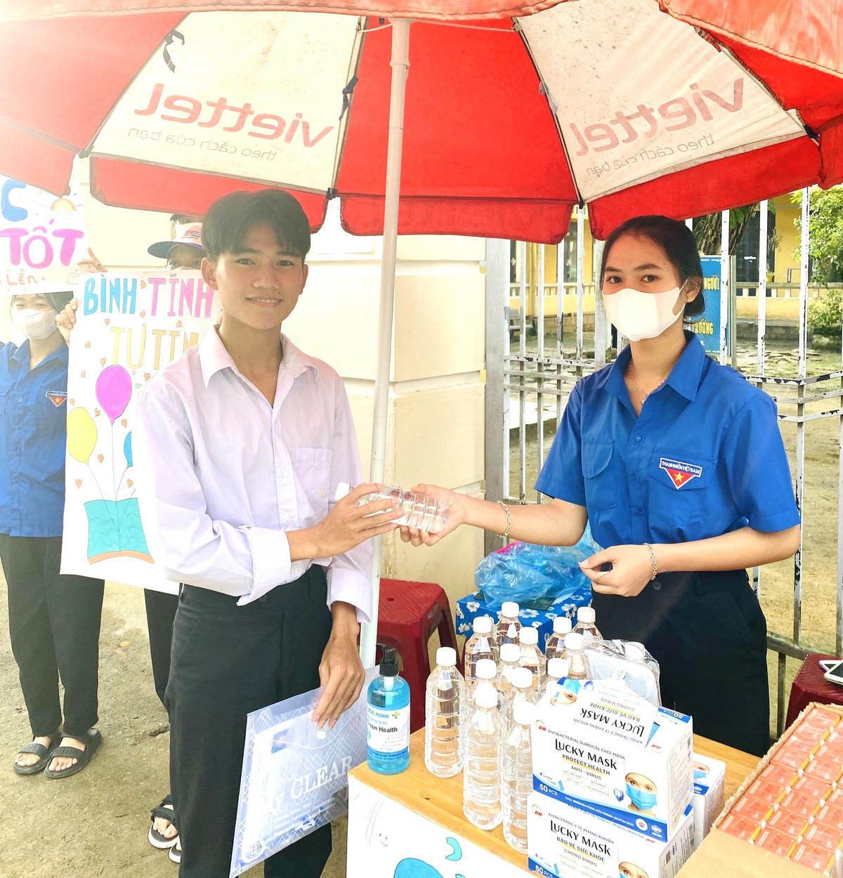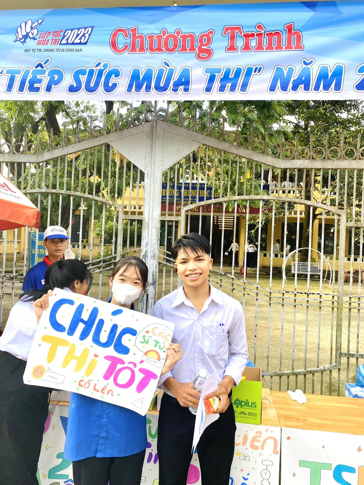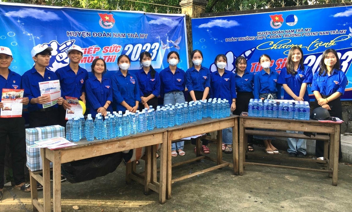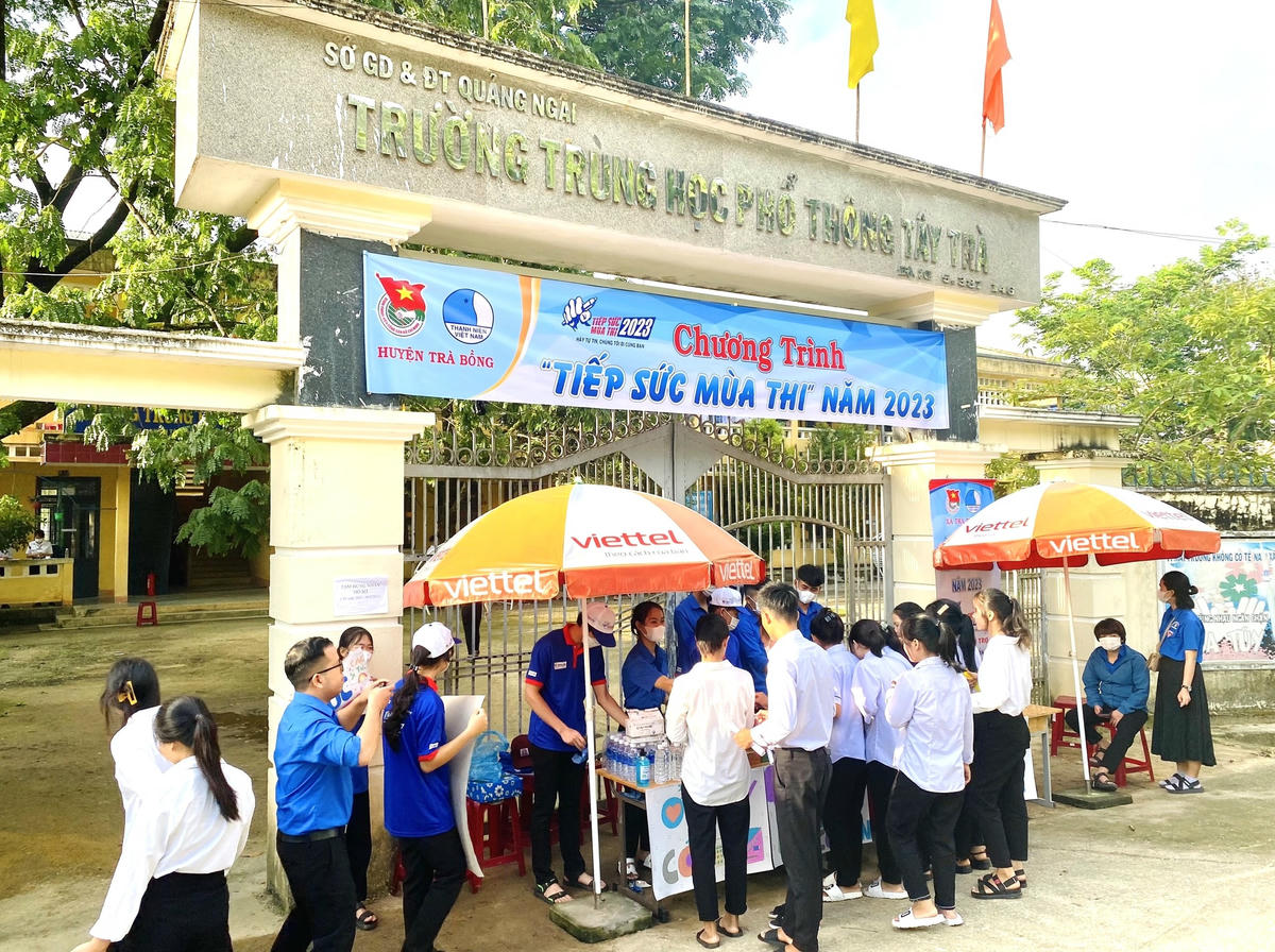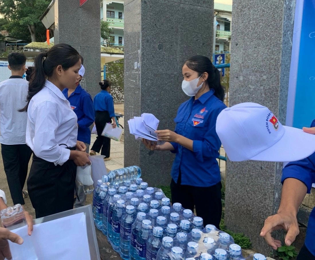 Còn anh Quách Chí Dũng, Phó Bí thư Huyện đoàn Trà Bồng, tỉnh Quảng Ngãi chia sẻ: “Tại 2 điểm thi này có khoảng 50 tình nguyện viên tham gia phát 300 suất cơm, 12 thùng sữa, nước suối, 25 thùng bút, viết, thước kẻ, compa, khăn lạnh, bánh ngọt…”.