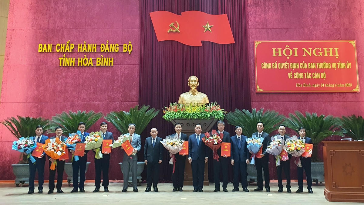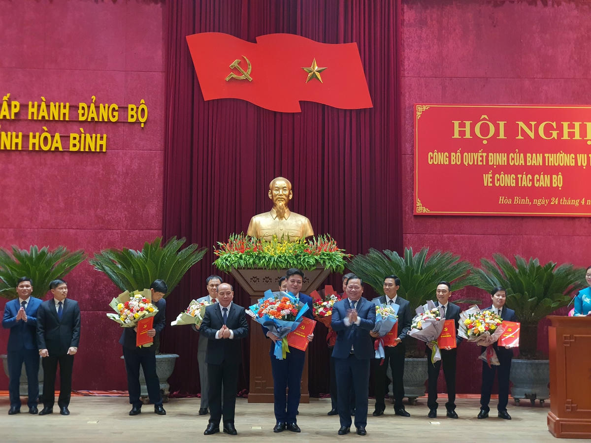 Theo đó, ông Nguyễn Văn Thắng, Ủy viên Ban Thường vụ Tỉnh ủy, Giám đốc Sở Kế hoạch và Đầu tư giữ chức Bí thư thư Thành ủy Hòa Bình; ông Nguyễn Đức Dũng, Ủy viên Ban Thường vụ Tỉnh ủy, Chánh Văn phòng Tỉnh ủy, giữ chức Bí thư Huyện ủy Lương Sơn; ông Đinh Đức Lân, Bí thư Huyện ủy Mai Châu giữ chức Chánh Văn phòng Tỉnh ủy Hòa Bình; ông Nguyễn Trần Anh, Giám đốc Sở Tài nguyên và Môi trường giữ chức Bí thư Huyện ủy Mai Châu; ông Bùi Quang Toàn, Bí thư Huyện ủy Lương Sơn giữ chức Giám đốc Sở Tài nguyên và Môi trường Hòa Bình; ông Nguyễn Tuấn Anh, Chánh Văn phòng UBND tỉnh giữ chức Giám đốc Sở Xây dựng Hòa Bình;