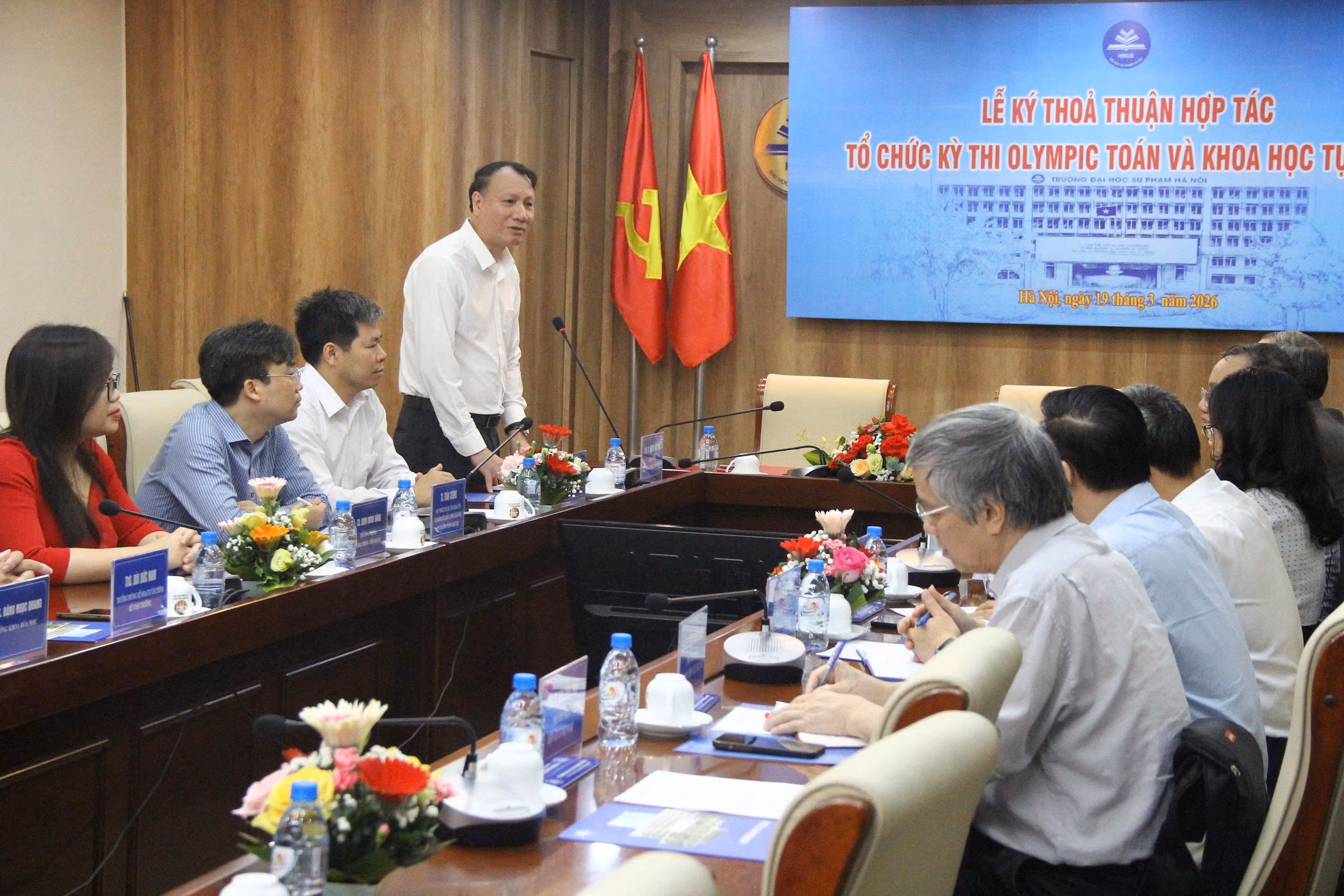 Sáng 19/3, Trường Đại học Sư phạm Hà Nội phối hợp với các hội chuyên ngành gồm: Hội Toán học Việt Nam, Hội giảng dạy Vật lý, Hội Hóa học Việt Nam và Hội các ngành Sinh học Việt Nam tổ chức Lễ ký kết thỏa thuận hợp tác về tổ chức thi Olympic Toán và Khoa học Tự nhiên.