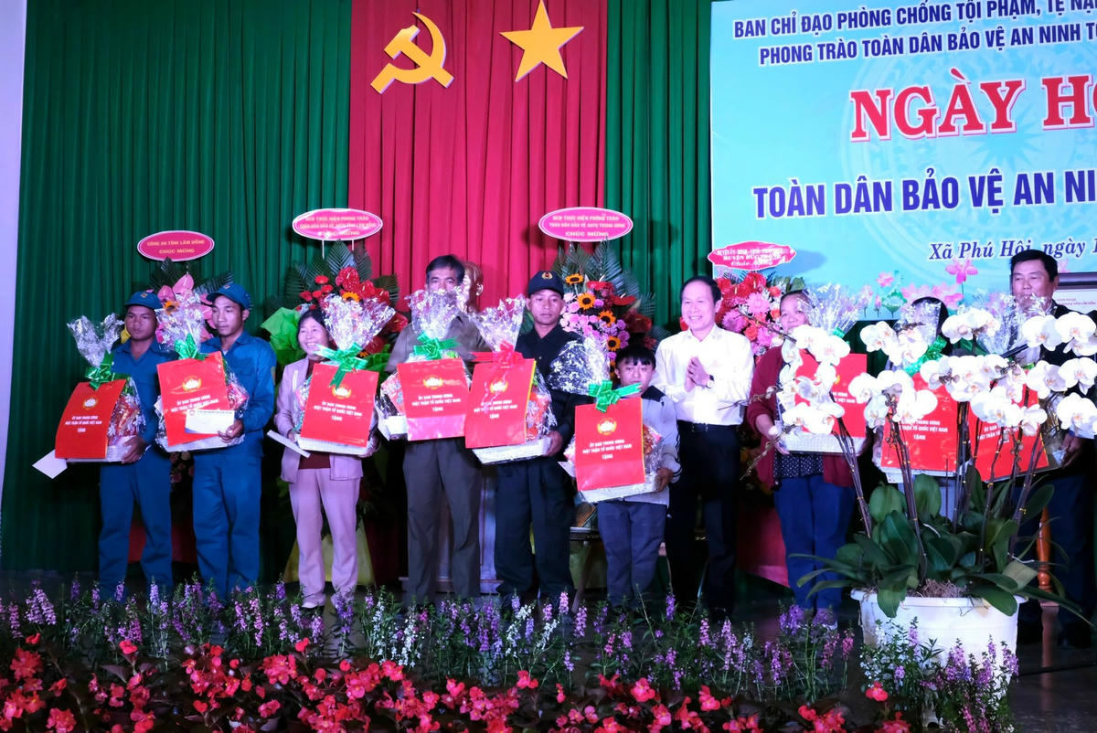 Bày tỏ niềm vui mừng khi hòa chung không khí sôi nổi của nhân dân trong xã khi tham dự Ngày hội, thay mặt Ban Chỉ đạo thực hiện phong trào Toàn dân bảo vệ an ninh Tổ quốc Trung ương, Phó Chủ tịch - Tổng Thư ký Lê Tiến Châu ghi nhận và biểu dương những thành tích, kết quả phong trào Toàn dân bảo vệ an ninh Tổ quốc của xã Phú Hội trong năm qua; nhất là sự chủ trì tích cực, chủ động và đóng vai trò nòng cốt của lực lượng công an xã Phú Hội nói riêng và Công an tỉnh Lâm Đồng nói chung.