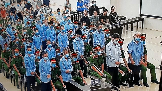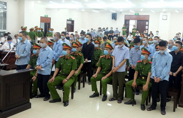 Lê Đình Quân (44 tuổi): 5 năm tù; Bùi Văn Niên (40 tuổi): 3 năm tù, hưởng án treo; Bùi Văn Tuấn (29 tuổi): 3 năm tù; Trịnh Văn Hải (32 tuổi): 3 năm tù; Nguyễn Xuân Điều (58 tuổi): 3 năm tù, hưởng án treo; Mai Thị Phần (57 tuổi): 30 tháng tù; Đào Thị Kim (37 tuổi): 24 tháng tù, hưởng án treo; Lê Thị Loan (54 tuổi): 30 tháng tù, hưởng án treo; Nguyễn Văn Trung (32 tuổi): 18 tháng tù, hưởng án treo