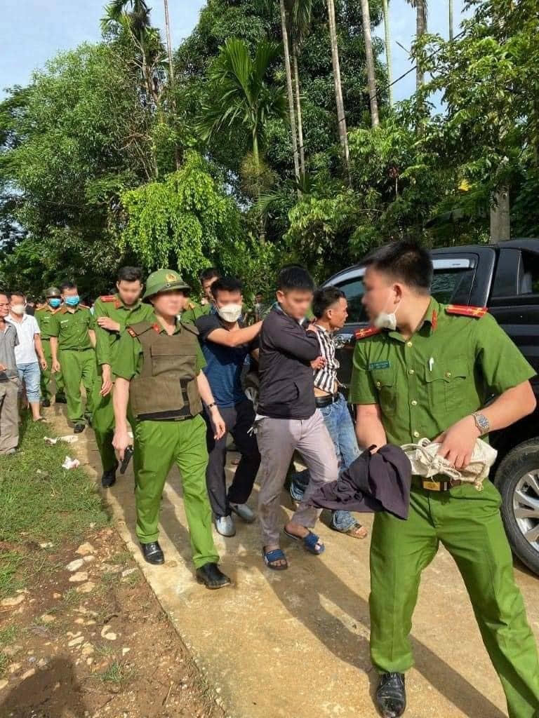 Sau gần 2 giờ truy tìm, lực lượng Công an đã bắt giữ thành công thủ phạm khi đối tượng đang lẩn trốn ở khu vực đồi keo phía sau hiện trường.